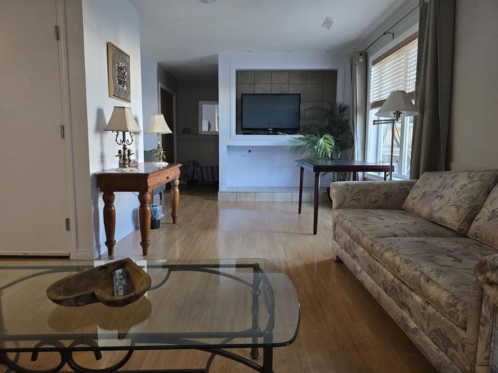 The spacious primary suite includes a walk in closet and a full ensuite with jacuzzi tub, separate shower, and ample storage. A second bedroom, full bathroom, and convenient main floor laundry complete this level.