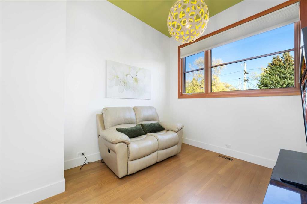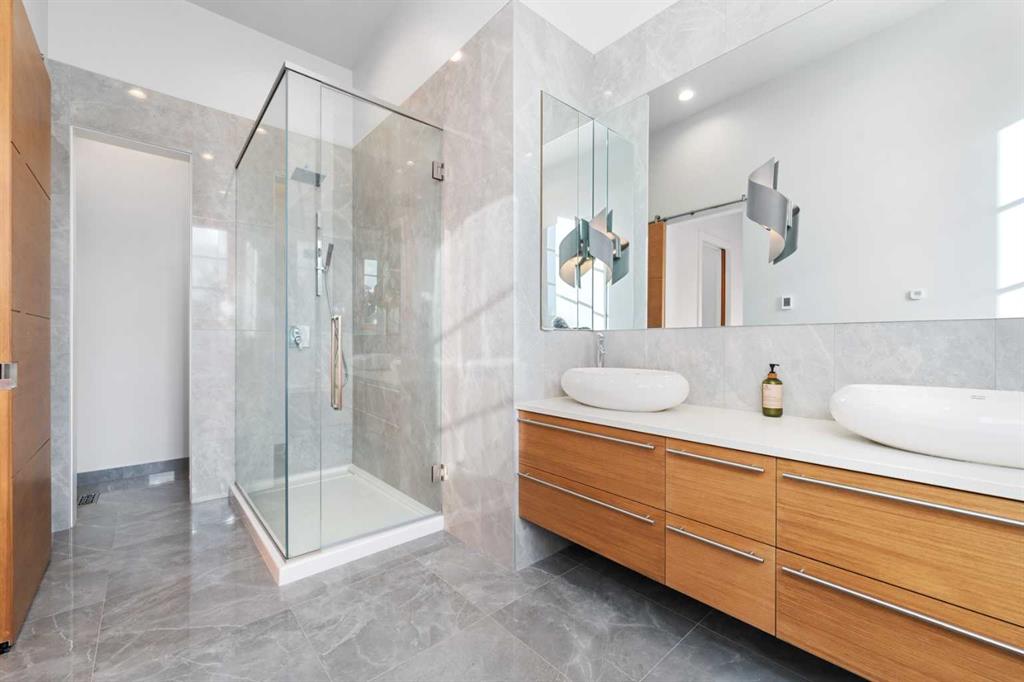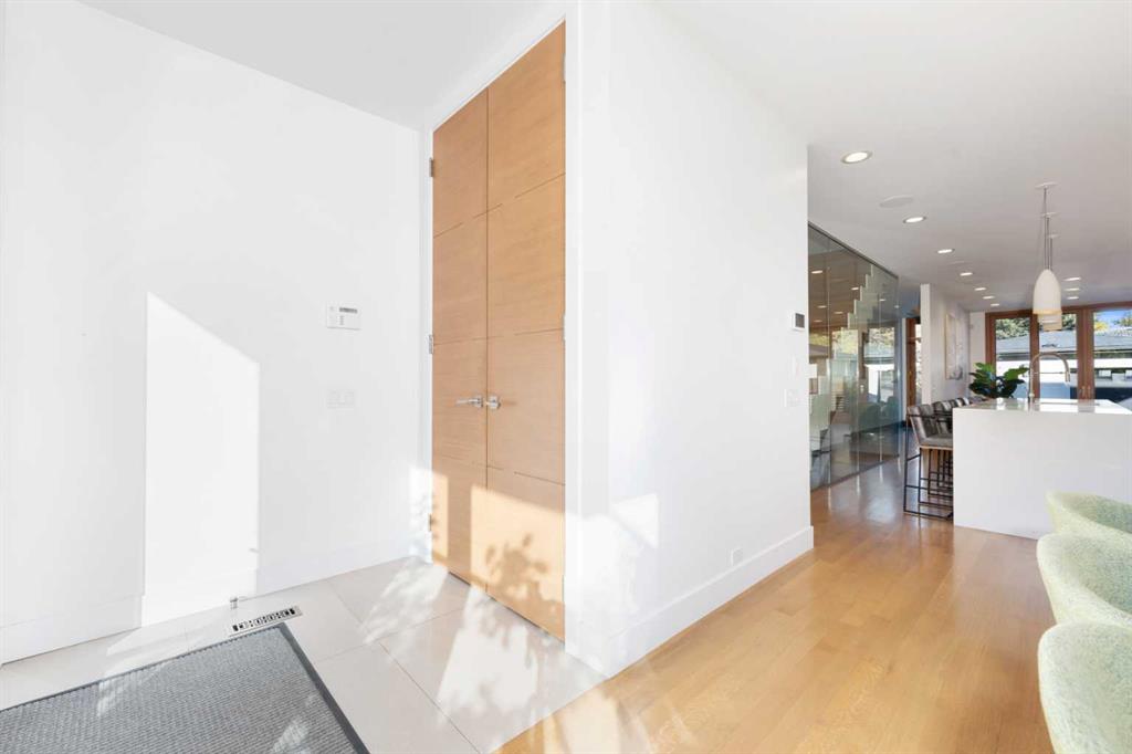 Upstairs, 11’ ceilings and solid hardwood floors set a tone of quiet sophistication. The primary suite is a serene retreat with a spacious walk-in closet and a spa-like ensuite featuring heated tile floors, dual vanities, and a double soaker tub. Two additional bedrooms and a well-appointed full bath provide comfort and flexibility for family or guests, while the convenient upper laundry room adds practicality to the space. The fully developed lower level continues the home’s modern aesthetic, featuring 9’ ceilings, large windows, and polished, stained concrete floors that lend a stylish, urban edge. A wet bar with a dishwasher makes entertaining easy, while the open recreation area offers versatility as a media room, gym, or guest suite. With a sauna rough-in and generous storage, every need has been anticipated. Behind the design, high-performance features ensure lasting comfort and efficiency, including a Lennox 4-zone HVAC system, triple-pane windows, and built-in ceiling speakers. Outside, the home’s appeal continues with professional landscaping, wide exposed aggregate walkways, and contemporary exterior lighting that highlights its architectural form. Set on a quiet, tree-lined street with west-facing exposure, this property offers exceptional light and privacy in a sought-after inner-city location. With easy access to the core and other major routes, it combines urban convenience with a peaceful residential setting. Sophisticated yet welcoming, this Highland Park home stands out for its thoughtful design, exceptional build quality, and effortless livability — a space that feels as good as it looks.