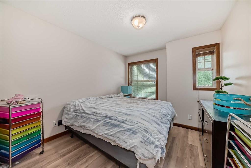 Upstairs, a curved staircase leads to the master suite, a tranquil retreat complete with a custom walk-in closet, private balcony with sunset views, and a luxurious 5-piece ensuite featuring a skylight, double vanity, soaker tub, and separate shower. Two additional bright and spacious bedrooms share this level, along with a conveniently located laundry area. The finished basement offers additional living space with a rec room for movies and games, a fourth bedroom, another full bathroom, and ample storage. Outside, the west-facing backyard is perfect for enjoying sunny days on the full-width deck, surrounded by mature trees and a fenced grassy yard ideal for family activities. An insulated double detached garage provides parking convenience. Close to School, transit, shopping easy access to Centre street and 4th Street. Call to view before it's gone!.