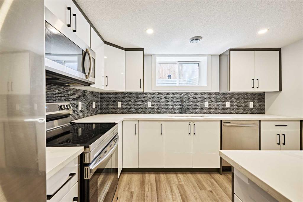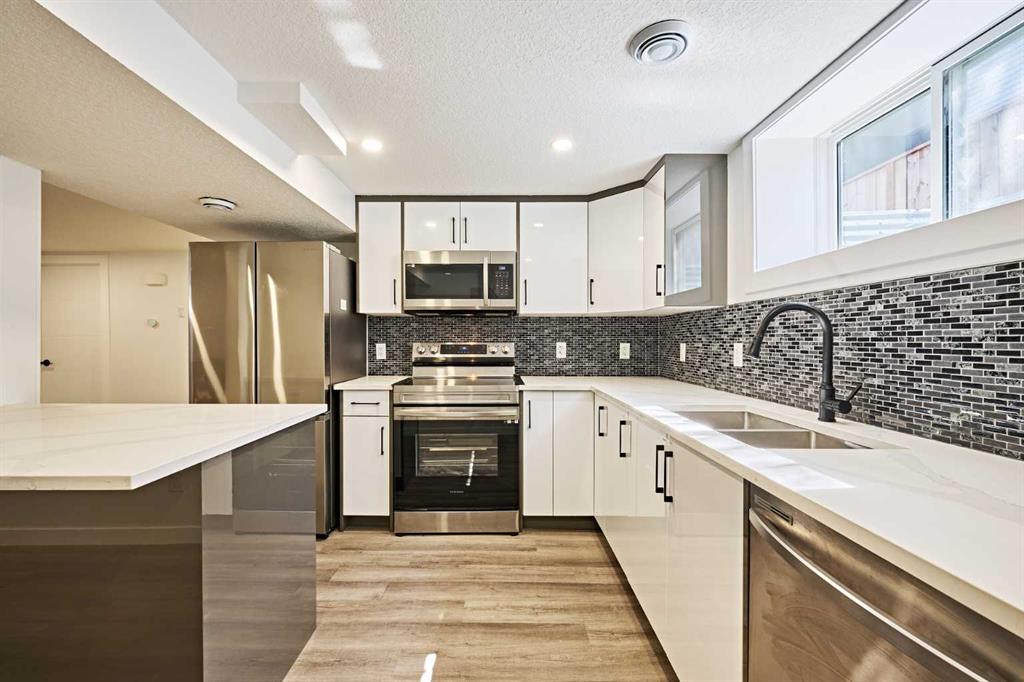 Discover this stunning, fully renovated bungalow in the heart of Calgary’s desirable Highwood community, offering over 2200 sq ft of finished living space on a full 60×100 ft lot. Professionally renovated in 2023 down to framing and foundation with city permits, this 5-bedroom, 4-bath home features a legal 2-bed/2-bath basement suite—perfect for rental income or extended family. The main floor showcases a modern open-concept design with modern cabinetry, countertops, stainless-steel appliances, three spacious bedrooms, two full bathrooms, and private laundry. The legal suite includes its own kitchen, laundry set, private entrance, and separate furnace with Nest thermostat control. Enjoy the convenience of a triple attached garage (one single + one double) with an extended driveway, fenced yard, and wired security camera system. Major 2023 upgrades include roof, windows, doors, double garage, underground water line, foundation waterproofing, weeping tile, 8-inch insulated stucco exterior, upgraded insulation, two furnaces, hot-water tank, lighting, flooring, and drywall. Perfectly located within walking distance to schools, parks, pool, community centre, and minutes to Confederation and Nose Hill Park. 2025 City Assessment $944,500 — currently offered well below assessed value for a quick sale. Schedule your private showing today and experience exceptional value in one of Calgary’s premier inner-city neighborhoods.
