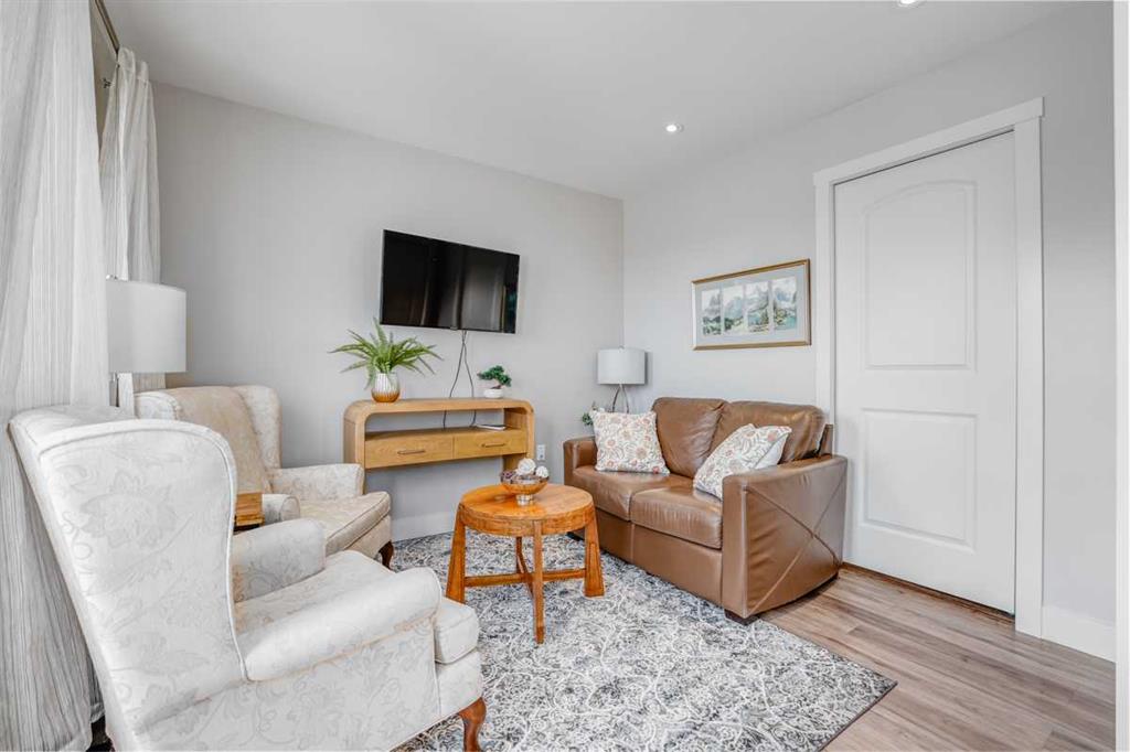 What an exceptional one-of-a-kind property located on a cul-de-sac overlooking a park and enjoying some views of the city. The property includes a fully developed bungalow with numerous renovations, a double detached garage, a separate garden storage area, a carriage house suite above the garage with balcony, beautiful landscaping both front and back, and patio areas galore. In 2017, the home was updated with new shingles and eaves troughing, new efficiency furnace, new water tank, new electric panel, new shower in three-piece bathroom, new windows in kitchen, bathroom, and main floor & basement bedrooms. Living and dining room windows have been upgraded as well. The main floor features a traditional L-shaped living/dining area, beautiful bay window with custom blinds, and hardwood under the carpet throughout. The kitchen boasts a new electric range and microwave. The basement is fully developed with a cozy family room complete with an electric fireplace, two bedrooms, bathroom, and a cold room. The double detached garage has in floor heating, a drain and a two-piece bath. The carriage suite also has in floor heating, is fully furnished, including dishes, and patio sets. There is a concrete parking pad for the suite with access from the back alley. The upgrades included the detached garage, the carriage suite with its own street number, the concrete work, the fencing, the landscaping and all the beautiful stonework. A fabulous location enjoying nearby amenities such as community centre, swimming pool, schools, shopping, and convenient transportation. DON'T MISS THIS OPPORTUNITY TO OWN!!! A PLEASURE TO VIEW!!