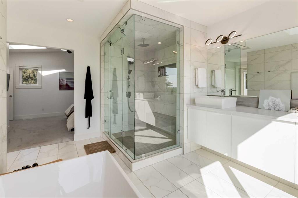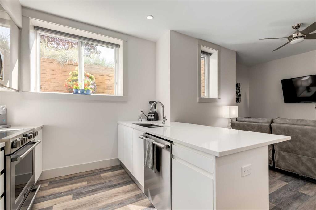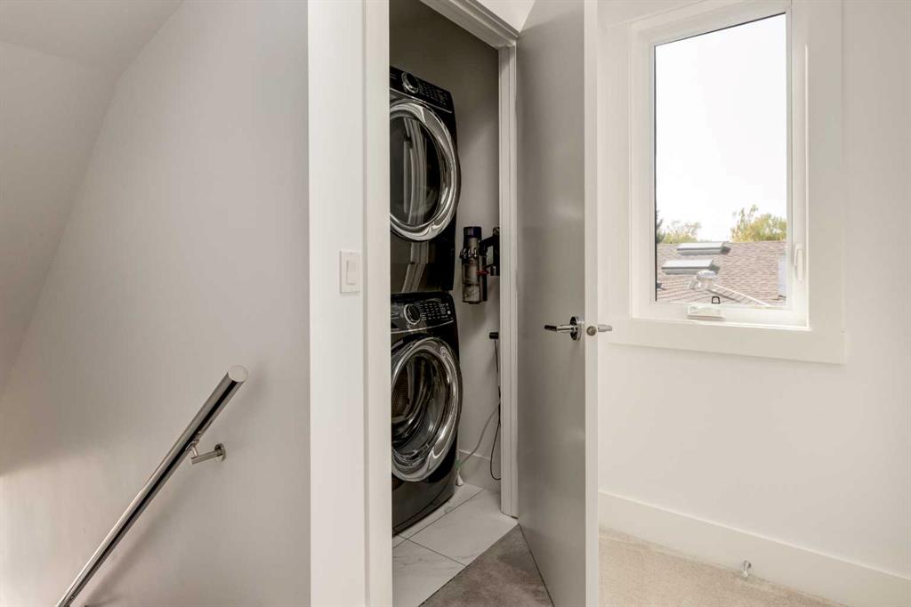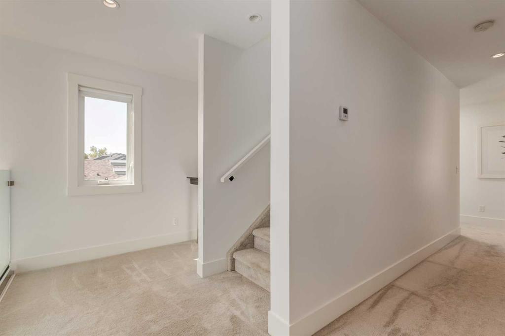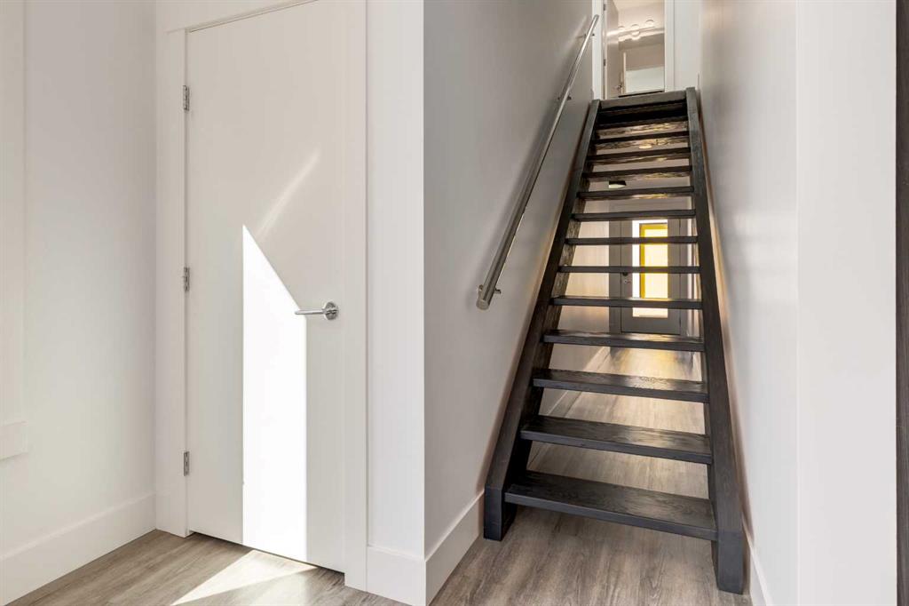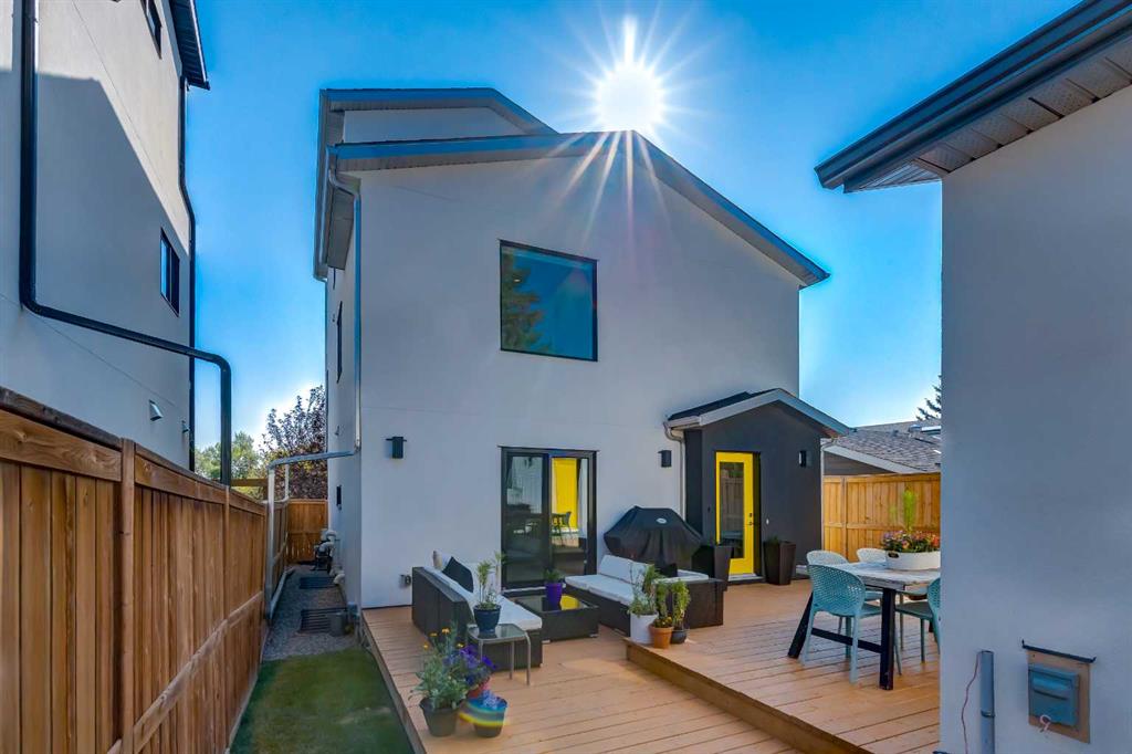 The home with the yellow door... yes, that one. Now is your chance to own this striking modern residence tucked into the sought-after community of Highwood. Situated on an extra-wide lot, this thoughtfully designed home offers over 2,900 sq ft of living space across three levels, plus a fully developed basement, all created to maximize light, volume, and livability. Clean architectural lines, a soft neutral palette, and expansive windows set a calm, airy tone throughout. Soaring ceilings, sleek finishes, and two dramatic open-to-below spaces are flooded with natural light from four skylights, creating a sense of space that feels both intentional and inviting. The kitchen balances form and function beautifully, featuring stainless steel appliances, a gas range, custom soft-close Italian cabinetry, and white quartz countertops with a waterfall island, designed for both everyday living and entertaining. The main living area is anchored by a distinctive BioFlame fireplace and opens seamlessly to a 600 sq ft deck and professionally landscaped, west-facing backyard, ideal for sunset evenings. The second level offers three bedrooms, including one with a private ensuite and heated floors, while custom built-ins throughout the home ensure effortless organization. The third-floor primary retreat feels like a private spa, complete with in-floor heating, an oversized shower, and serene finishes. Step onto your private balcony and take in downtown views- perfect for enjoying fireworks from the comfort of home. The legal one-bedroom basement suite is equally polished, with a private side entrance, custom Italian kitchen, radiant floor heating, soundproofed construction, oversized shower, and generous storage. With long-term tenants eager to stay, it’s an ideal income opportunity or multi-generational solution. Additional highlights include an oversized 22’ x 24’ insulated garage with 220V EV charging, custom window coverings, USB outlets throughout, high-efficiency furnace and hot water tank, roughed-in A/C, and a quiet cul-de-sac location with an east-facing front overlooking a lush park. Surrounded by mature trees and excellent schools—including public, Catholic, French, Spanish, Mandarin, and Foundations for the Future, Highwood is a true hidden gem. With Confederation Park, outdoor rinks, golf, pools, playgrounds, bike paths, transit, and the future Green Line LRT all nearby, this home offers the perfect balance of design-forward living and everyday convenience. A rare opportunity where modern minimalism, refined craftsmanship, and inner-city lifestyle come together seamlessly.