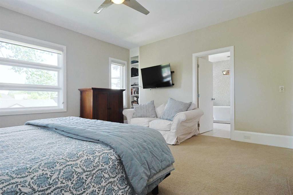Here on one of Hillhurst’s most sought-after streets is where you’ll find this beautifully appointed custom home, siding onto a playground & walking distance to winding trails of the Bow River Pathway system. Located on this 37x125ft lot on exclusive Broadview Road, this stunning two storey home enjoys rich Brazilian Cherry floors & quartz countertops, 4 bedrooms & 4.5 bathrooms, oversized & heated 2 car garage plus a host of upgrades including high-end appliances, central air & steam shower, South backyard & partial downtown views. Original owner of this fully finished executive home, with a sensational main floor with 10ft ceilings, spacious formal living room with paneled feature wall, open concept home office with built-in shelving & sun-drenched family room with sleek contemporary fireplace complemented by built-in cabinets. The exquisitely-designed kitchen is fully-loaded with all the bells & whistles…2-toned cabinets & quartz counters, undercabinet lighting, butlers pantry & pull-out spice drawers, quartz waterfall island & top-of-the-line appliances including Electrolux AEG double ovens & gas cooktop, Liebherr fridge & Miele hoodfan. Head on upstairs to the 2nd floor & 3 fantastic bedrooms…each with their own ensuites. The owners’ retreat will be your private sanctuary & it comes complete with a large walk-in closet & luxurious ensuite with free-standing soaker tub, glass steam shower with body jets & quartz-topped double vanities. There are walk-in closets & full ensuites in the other 2 bedrooms…which both face South & have partial downtown views. Completing the 2nd floor is the laundry room with LG steam washer & dryer, sink, built-in cabinets & separate access from the master bedroom closet. The lower level – with infloor heating, is beautifully finished with a 4th bedroom, bathroom with shower, exercise room & rec room with wet bar & wine room. Additional extras & features include the main floor mudroom with built-in lockers, built-in ceiling speakers & underground sprinklers, low-flow/dual-flush toilets & low-maintenance South backyard with concrete deck & patio. The low-maintenance South backyard is fully fenced & has a terrific 2-level concrete deck & patio, gas line for your BBQ & oversized detached 2 car garage complete with heater plus a parking pad which would perfect to park your RV or boat. Prime location in one of Northwest Calgary's most desirable inner city neighbourhoods with walking distance to Broadview Park & bus stops, just minutes to the vibrant Kensington District, major retail centers, schools & downtown.