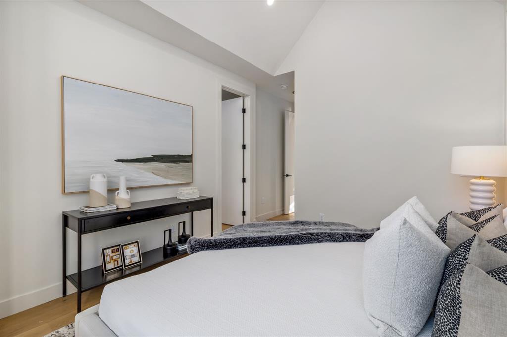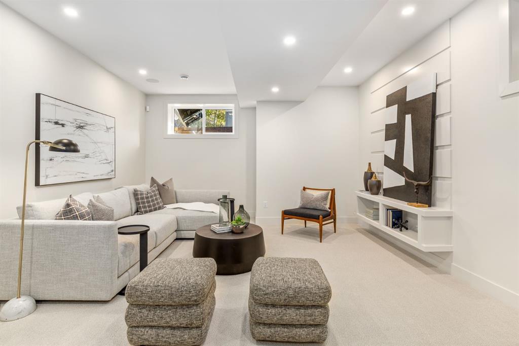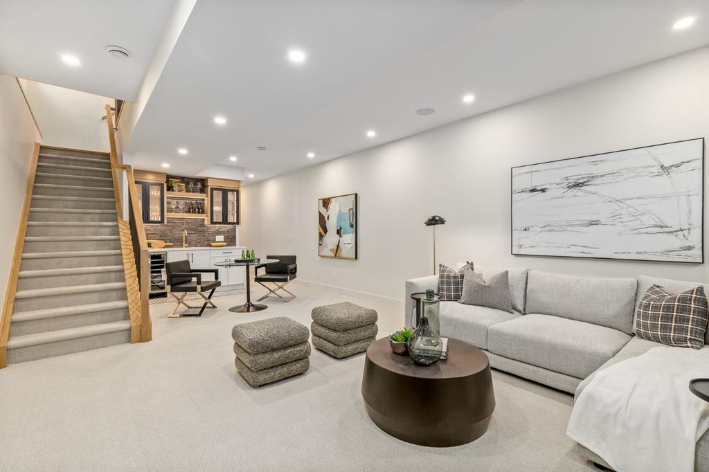 OPEN HOUSES Sat Jan 31st, 2-4PM & Sun Feb 1st 4-6PM! Experience elevated inner-city living with this impeccably designed, brand-new home nestled in one of Calgary’s most sought-after neighbourhoods: Hillhurst. Constructed by a trusted local builder known for craftsmanship, functionality, and aesthetic excellence, this 2-storey residence offers 2,224 SF above grade, with a fully developed basement, 4 bedrooms, and 4.5 bathrooms—a perfect blend of modern luxury and thoughtful detail. From the striking brick facade to the high-end engineered wide plank oak hardwood, every inch of this home exudes quality. The main floor welcomes you with a built-in entry feature and a front formal dining area, accented by elegant wall mouldings, white and gold sconces, and a designer chandelier. At the other end, an open-concept living room is a showstopper, featuring a large-format textured tile fireplace, custom built-ins with display lighting, and massive patio sliders leading to a west-facing, 135-ft deep backyard with a raised patio and gas line—ideal for indoor-outdoor entertaining. The chef’s kitchen is nothing short of stunning, complete with a 2.5" thick quartz island, panel-ready fridge/freezer with knurled handles, sleek quartz countertops, a gas range with pot filler, and backlit display cabinets framing the custom hood fan. You’ll also find a farmhouse sink, full slab backsplash, hidden coffee/appliance nook, built-in pantry, and a drawer-style microwave—each designed to inspire culinary creativity. Tucked behind a barn-style sliding door, the den offers a quiet workspace with a built-in desk, shelving, and bright window. The mudroom, also with a barn door, features tiled flooring, a built-in bench, and a large closet for seamless organization. Upstairs, each of the three spacious bedrooms come with walk-in closets and custom built-ins, along with private ensuites. The primary is sure to impress with vaulted ceilings, a LED-lit feature wall, statement gold light fixture, and a spa-inspired ensuite that boasts a steam shower, dual vanities, and a standalone soaker tub with dramatic black and white tile wall backdrop. A nearby laundry room offers convenience with a sink, folding station, shelving, and tile backsplash. The fully finished, carpeted basement, with 9-ft ceilings, is roughed in for in-floor heating and designed for comfort and versatility—featuring a spacious rec area, a TV wall with built-in components, a wet bar with lit display shelves and tile flooring, a full bath, and a large fourth bedroom with built-ins including a desk. An efficient mechanical room completes the lower level, with additional upgrades including solid core doors and built-in speakers throughout the entire home. Perfectly situated just steps from shops along 14 St NW and walking distance to Kensington Village, Calgary’s extensive river pathways, and the Downtown Core—this is urban luxury at its finest. Act now and make this exceptional Hillhurst property your forever home.