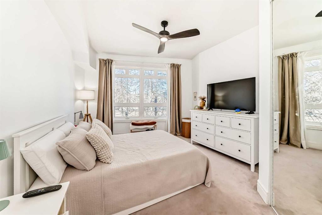 Unbelievable Price $315,000. Spend summer days floating the river, exploring the extensive pathway network, or enjoying the neighbourhood’s lively festivals and events. Surrounded by boutique shops, acclaimed restaurants, green spaces, and direct routes via 14 Street NW and Memorial Drive, this home offers the perfect blend of inner-city energy and everyday comfort in one of Calgary’s most desirable locations.. Welcome to Kensington Mews, where urban convenience meets the vibrant lifestyle of one of Calgary’s most sought-after inner-city neighbourhoods. Perfectly positioned along 14 Street NW in the heart of Kensington, this beautifully maintained second-floor condo offers 909 sq ft of bright, functional living space with two bedrooms and a newly updated bathroom (2026). Floor-to-ceiling west-facing windows fill the open-concept kitchen, dining, and living area with natural light, while stainless steel appliances, a central island, and a cozy gas fireplace create a warm and welcoming atmosphere. A sunny west-facing balcony with gas hookup provides the perfect spot to relax and enjoy evening sunsets or effortless summer barbecues.