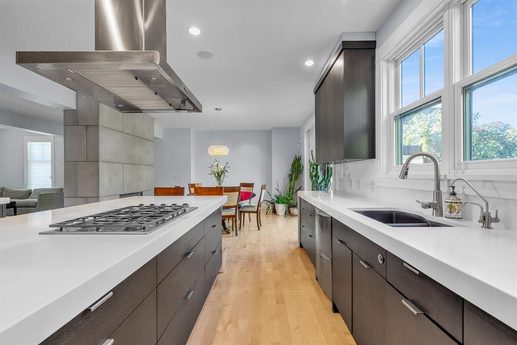 Welcome to 2312 12 Avenue NW, where contemporary elegance meets everyday comfort in one of Calgary’s most coveted inner-city neighbourhoods. Designed with an emphasis on light and space, this residence welcomes you with soaring ceilings, walls of windows, and a seamless open-concept layout that invites both connection and calm. At the heart of the home, a dramatic double-sided fireplace creates a sophisticated focal point, linking the airy living room to the dining area that flows effortlessly to the outdoors. The gourmet kitchen is a masterclass in modern design, boasting sleek custom cabinetry, integrated premium appliances, and an oversized quartz island crafted for gatherings. Upstairs, the primary suite is a sanctuary of style, featuring vaulted ceilings, a private balcony with treetop views, and a spa-inspired ensuite designed for true relaxation. Secondary bedrooms are equally inviting, offering generous proportions and thoughtful details. The fully finished lower level extends the living experience with a spacious family room anchored by a statement fireplace, ideal for cozy evenings or lively entertaining. Outside, a tranquil backyard oasis with mature landscaping and an expansive deck provides the perfect backdrop for summer soirées or quiet mornings with coffee. Tucked away on a serene, tree-lined street just minutes from downtown, parks, schools, and amenities, this home offers more than just a place to live — it offers a lifestyle of refinement, convenience, and connection.