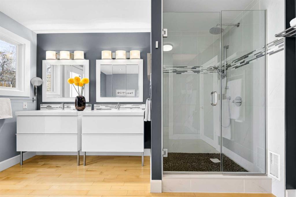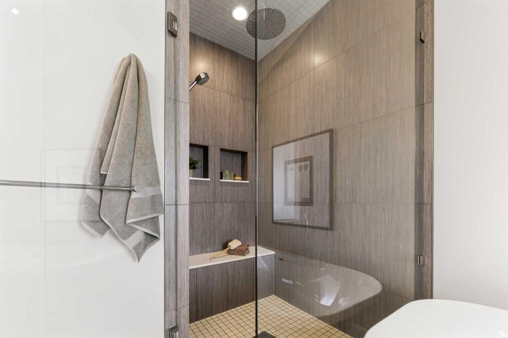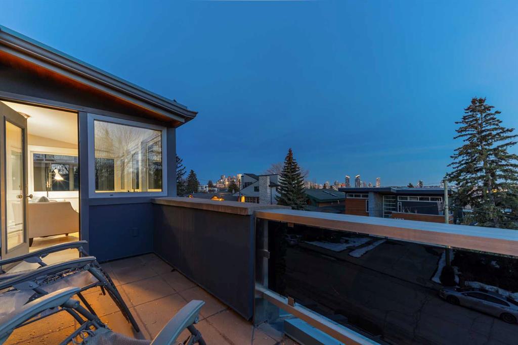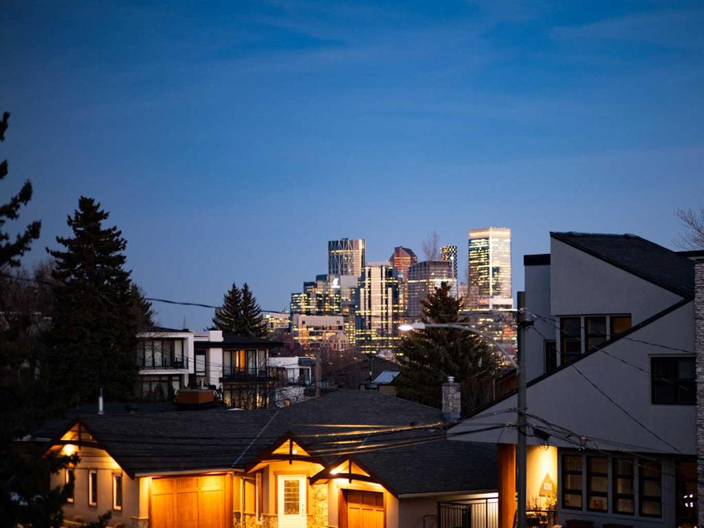 In an era of generic luxury, this striking home, with architectural lines redefined by Architect Richard Davignon, is an elevated sanctuary for the active, executive family. Sprawling over 4,000 square feet of developed living space on a generous 75’ wide lot, this residence perfectly bridges a vibrant inner-city lifestyle with seamless access to the mountains. William Blake Homes was enlisted to execute the dramatic primary suite, while Marvel Kitchens designed the heart of the home, a sophisticated culinary hub focused on performance. It features a massive quartz island with glimpses of the downtown skyline, high-end appliances, clever cabinetry, and a dedicated coffee bar area. Adjacent, the Davignon designed studio, built over the garage space, is an exercise in intentional, architectural detail; defined by soaring ceilings and an expansive gas fireplace, this light-filled space offers independent front and back exterior access, serving effortlessly as a professional home office option or the home's primary gathering hub. Ascend to the primary suite, a masterwork by William Blake Homes. The private balcony offers cinematic, dual-directional views of both the city skyline and the Rocky Mountains. A study in quiet luxury, the suite features 12ft vaulted ceilings, a sunroom, and a meticulous 5-piece ensuite where heated floors extend even into the shower, complemented by a deep soaker tub and heated towel rack. The remainder of the upper level houses 2 additional generously-sized bedrooms with substantial closets, and a large family bath, all positioned at the rear of the home for ultimate privacy. The lower levels are equally purposeful: the north side offers a self-contained retreat with a family room, bedroom, bath, kitchenette type space, and laundry, ideal for teens, nannies, or generational living. The south side transitions into the ultimate active base, featuring a home gym (or 5th bedroom) and a dedicated gear room for ski tuning, bike maintenance or storage, complete with a cold room for wine. This leads to the attached triple garage, a core feature for the collector, redefined with over-height ceilings to accommodate a car lift and an innovative tandem bay. Outdoor living is prioritized through a series of defined spaces, beginning with a partially covered, south-facing patio off the entrance that facilitates effortless alfresco dining or a glass of wine while taking in the views. The private, tiered backyard is an entertainment retreat featuring multi-level decking, a hot tub, elevated flat space to play, and a double parking pad off the back lane. The front yard presents a sophisticated, climate-conscious xeriscape for a low-maintenance lifestyle. Located within walking distance to amenities and offering rapid access to the Children’s and Foothills Hospitals, the U of C, The Calgary Winter Club and downtown, the home is finished with enduring materials, including a 50-yr blue metal roof, upgraded insulation, and an efficient multi-zoned heating system.