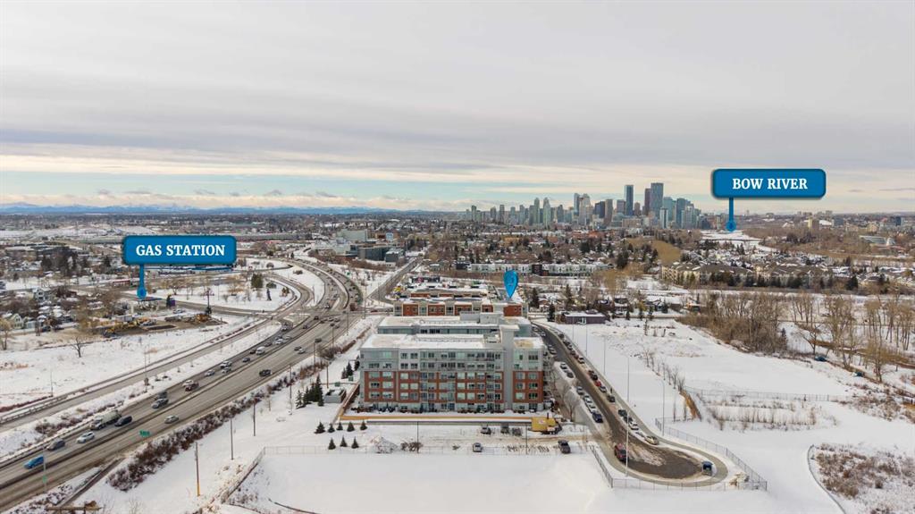 Welcome to SoBow in the heart of Inglewood—one of Calgary’s most vibrant and beloved communities, once voted Best Neighbourhood in Canada. This beautifully updated 2 bedroom, 2 bathroom main floor unit offers an unbeatable lifestyle just steps from unique shops, acclaimed restaurants, art galleries, and the Bow River pathway system. Whether you’re biking, walking, or hopping on an e-scooter, downtown is effortlessly accessible, making everyday living as convenient as it is exciting. Inside, the open-concept floor plan is bright and welcoming, framed by large windows that flood the space with natural light. Engineered hardwood floors flow throughout the main living areas, while a cozy gas fireplace anchors the living room—perfect for relaxing evenings at home. The modern kitchen is both stylish and functional, featuring granite countertops, stainless steel appliances, garburator, updated cabinetry, and plenty of workspace for cooking and entertaining. The thoughtful layout includes two well-sized bedrooms and two beautifully finished bathrooms. The primary suite offers a spa-like ensuite with dual sinks, quartz countertops, and a built-in linen closet, while the second bathroom is equally polished with matching quartz finishes. In-suite laundry adds everyday convenience, and a titled storage unit provides extra space for seasonal or recreational items. Step outside to your large main floor patio—ideal for morning coffee, evening wine, or summer BBQs thanks to the gas hookup. Pet lovers will appreciate that this building is extremely pet-friendly, with nearby pathways, parks, and even dog-welcoming local favorites like Cold Garden just around the corner. SoBow residents also enjoy outstanding building amenities, including an enormous fitness facility with steam shower and sauna, a large media room, bistro area, and a stylish lounge complete with foosball and pool tables—perfect for entertaining or unwinding without ever leaving home. With quick access to Deerfoot Trail, Blackfoot Trail, downtown, and Pearce Estate Park’s playgrounds, picnic areas, and river pathways, this location truly offers the best of urban living with a community feel. Don’t miss your opportunity to live in one of Calgary’s most sought-after neighborhoods—this is Inglewood living at its finest.