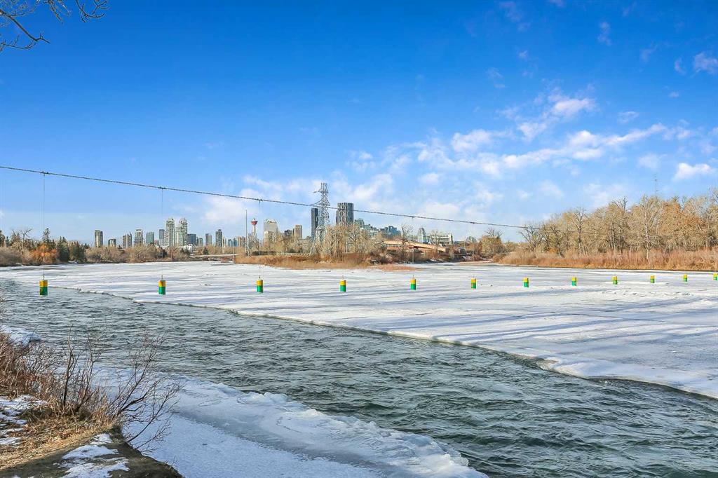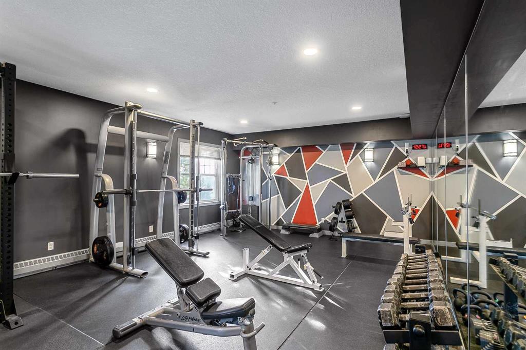 Spacious and bright 2-bed, 2-bath condo with in-suite laundry and 9' ceilings welcomes you home. Freshly painted throughout and an open-concept floor plan offers a great layout. The timeless kitchen features dark cabinetry, newer stainless steel appliances, and a generous eating bar. The dining room can accommodate a large table, while a corner gas fireplace complements the living room. The primary bedroom boasts a walk-in closet and a private 4-pc ensuite, while the second bedroom also has a walk-in closet and a convenient 4-pc cheater ensuite that can be closed off and accessed from the open area. Enjoy an exceptionally private, spacious balcony with south exposure for all-day sun plus a gas line for your BBQ. This isn’t your typical ground-floor unit. Due to grading, the elevated position feels more like a mid-level unit. Convenient titled underground parking and a storage locker make errands effortless. You’re locking up and in your car in under 30 seconds. Skip the gym membership! This well-equipped complex features a large, functional fitness centre and a recreation room. Ideal for gatherings, workouts, or a quiet workspace. Located in Inglewood, Calgary’s historic and vibrant neighbourhood known for its boutique shops, cafés, restaurants, live music venues, craft breweries, river pathways, and proximity to Pearce Estate Park, the Bow River, Harvie’s Passage Lookout, and the Inglewood Bird Sanctuary, you’ll enjoy a unique blend of urban lifestyle and natural beauty.