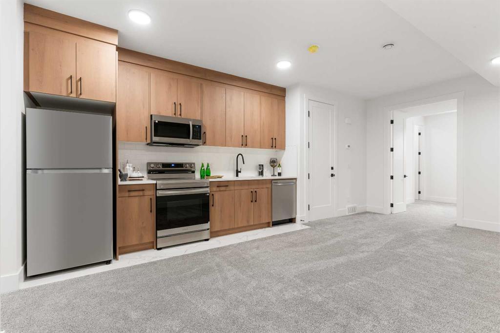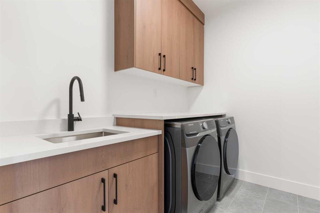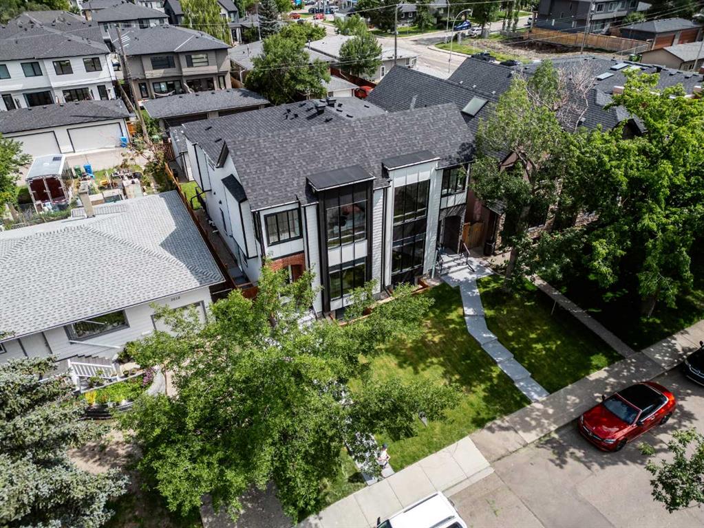 EXTENDED BASEMENT! Welcome to one of Killarney’s most exceptional homes — a brand new infill offering nearly 2,000 SqFt of beautifully designed living space. Here, elevated style meets everyday comfort in one of Calgary’s most sought-after inner-city neighbourhoods. Thoughtfully crafted for both daily living and upscale entertaining, this home combines modern design, an intelligent open-concept layout, and unmatched functionality into one remarkable package. As you step inside, a beautiful formal dining area sets the tone for the home, flowing seamlessly into the gourmet kitchen anchored by a striking 12-foot quartz island. Designed for both relaxed mornings and upscale gatherings, this kitchen is a space where style and practicality come together effortlessly. Across from the kitchen, a bright and versatile home office offers the perfect place to focus or create. Beyond, the inviting living room showcases a cozy fireplace — perfect for those cold Calgary winters — and glass patio doors that open to a large rear deck, creating a smooth transition between indoor and outdoor living. A built-in mudroom with generous storage and a chic, tucked-away powder room add thoughtful functionality to the main level. Upstairs, the primary suite is a light-filled retreat with a vaulted ceiling, walk-in closet, and a spa-inspired ensuite featuring beautifully patterned floors, dual sinks, and a freestanding tub. Two additional bedrooms, a stylish main bath, and a conveniently located laundry room complete the upper level. Downstairs the extended basement is a standout feature, offering even more flexibility with a bright and spacious legal suite. This level includes a full kitchen, open living area, two private bedrooms, a flex room, and dedicated laundry room. Whether envisioned as an income-generating opportunity, a comfortable space for multi-generational living, or an inviting private retreat for guests, this space offers unmatched versatility without compromising style. The property is complete with a double detached garage and is ideally situated on a paved back alley, offering both convenience and functionality. With its elegant finishes, well-planned layout, abundant natural light, and a location just steps from parks, schools, amenities and quick connections to downtown, this home is more than just beautiful — it’s a smart investment in style, comfort, and long-term value.