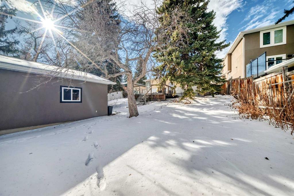| Back Lane, Pie Shaped Lot, Sloped Down, Treed |