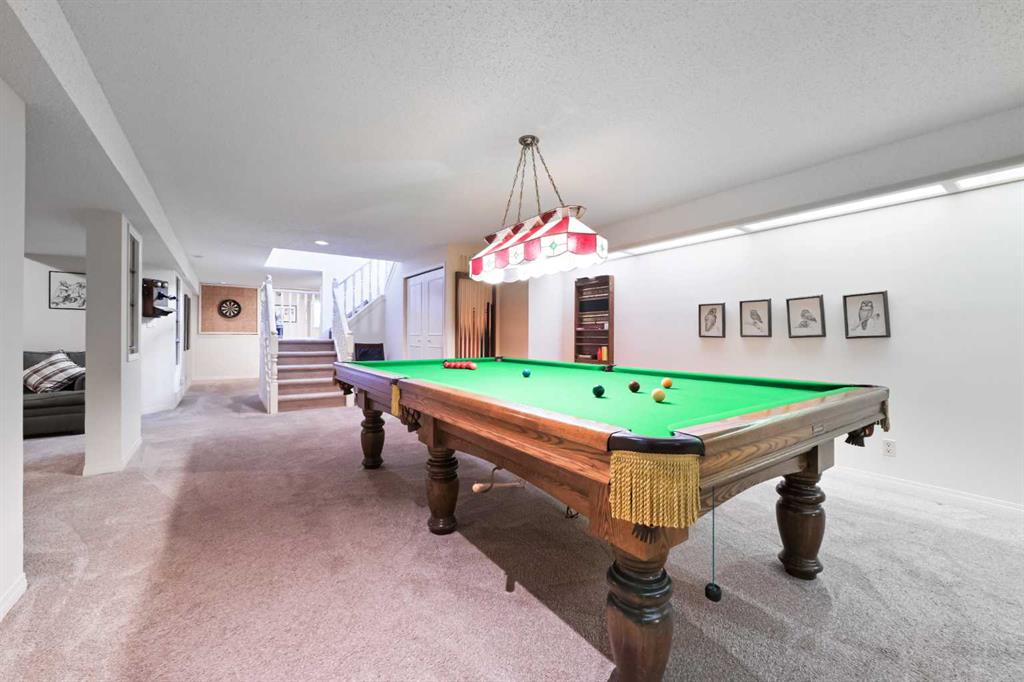 Welcome to this exceptional, oversized bungalow in the heart of Lake Bonavista Estates. Offering 1,744 square feet on the main floor and nearly 3,000 square feet of developed living space, this beautifully maintained home sits on a deep, oversized 75-foot-wide, west-backing lot with mature landscaping, wonderful outdoor living spaces, and plenty of privacy for relaxing summer afternoons. Bathed in natural light, this home features a smart, functional layout designed for both everyday living and entertaining. The kitchen offers extensive cabinetry, ample counter space, and a cozy eating nook with easy access to the back yard and deck. It connects effortlessly to the intimate dining room on one side and the casual great room on the other, creating a warm and inviting space to unwind with family at the end of the day. The main floor features three large bedrooms, including a secluded primary retreat with generous closet space and a private ensuite. You will also find a quiet sitting room that is perfect for curling up with your favourite book, along with a bar area that adds flexibility and character to the living space. The fully developed basement offers outstanding versatility, with a large family room currently set up with the included snooker/pool table, a bar and games area, a flex space, and a private den. There is also a massive storage area and a custom office nook, making this lower level as practical as it is spacious. This impeccably maintained home also includes a new furnace and an on-demand hot water tank. Ideally located close to shopping, parks, green spaces, and transportation, this is a rare opportunity to own a bungalow of this size in Lake Bonavista Estates. Book your showing today or call your favourite agent to view this exceptional home.