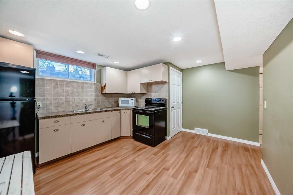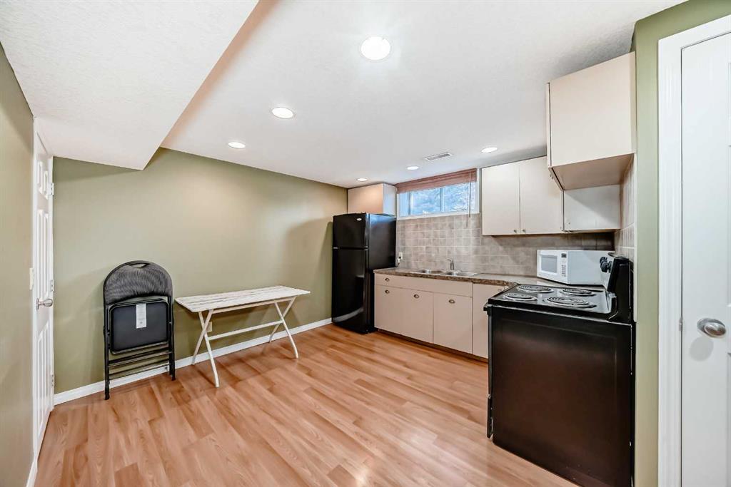 Beautifully maintained and renovated home in the sought-after community of Lakeview, featuring a separate entrance suite (illegal). This turnkey property is in excellent condition, ideal for those seeking a mortgage helper or a solid investment opportunity in a prime location. The main level offers three bedrooms, including a primary suite with a two-piece ensuite, a full bathroom, an updated kitchen with granite countertops, and convenient in-suite laundry. The lower level, with its own private entrance, includes a full kitchen, one bedroom, a full bathroom, a den, and separate laundry facilities. Situated on an oversized Lakeview lot, the property provides ample rear parking and a large 22x24 detached garage that is insulated, drywalled, equipped with a gas line for a potential heater, and has sufficient power for workshop use. The sunny west-facing backyard spans across the 60x110 ft lot and also includes a gas line for outdoor entertaining or a future project. Recent updates include top-of-the-line roof shingles (2022), a new garage door opener (2023), a hot water tank (2024), and upgraded windows and siding with added insulation (2008). Additional features include central air conditioning and a built-in Vacuflo system, making this home move-in ready and exceptionally well-appointed.