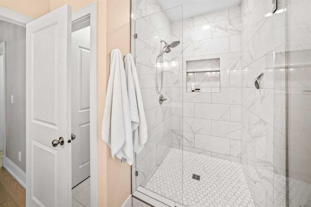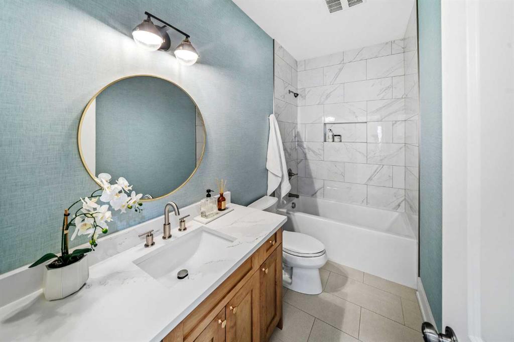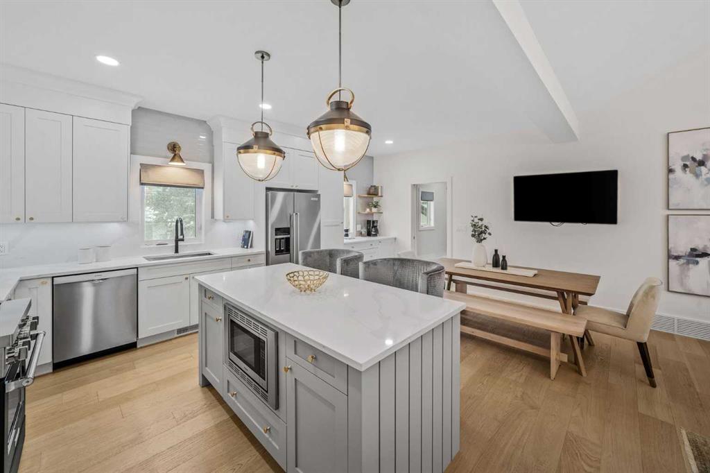 OPEN HOUSES ON FRIDAY, SAT & SUNDAY- APRIL 3RD, 4TH & 5TH - 1pm to 3pm: Welcome to the kind of home that stops scrolls and starts conversations. This modern craftsman bungalow offers over 2700 sqft of beautifully developed luxury living, featuring 2 bedrooms on the main level, 3 additional bedrooms below, and 3 full baths, blending timeless architecture with designer appointed interiors. Soaring vaulted ceilings and an airy open concept layout create an immediate sense of space, while the living room is anchored by a stunning fireplace framed with custom arched built ins, perfect for cozy evenings or elevated entertaining. Natural light pours through expansive windows, enhancing the home’s soft, curated palette. The chef inspired kitchen features sleek custom cabinetry, quartz countertops, a statement hood fan, premium stainless steel appliances, and a generous island with breakfast bar seating, ideal for morning coffee rituals or gathering with friends. Along the backyard facing wall, a beautifully integrated coffee bar, extensive built in storage, and thoughtfully designed pantry shelving elevate both form and function, while a private mudroom entrance to the kitchen keeps daily living effortlessly tucked away. The main floor hosts two bedrooms, including a show stopping primary retreat with vaulted ceilings, subtle shiplap detailing, and a spa caliber ensuite with oversized custom shower and walk in closet, offering a true sense of escape at the end of the day. The second bedroom, currently styled as an office, offers flexible living for today’s lifestyle. The dining area connects seamlessly to the main living spaces, creating the perfect backdrop for everything from intimate dinners to lively celebrations. Downstairs, the fully developed lower level expands your lifestyle with a spacious family room ready for movie nights, a flexible gym or yoga space, sleek wet bar for effortless hosting, three additional bedrooms, a full bath, and dedicated laundry room. Outside, a beautifully curated backyard blends architectural concrete with low maintenance turf, featuring a custom patterned patio that defines a dedicated bbq and entertaining area, along with a raised composite deck designed for lounging and gathering. A gas line has been extended to the deck for a future fire table, creating the perfect setting for summer evenings and quiet moments alike, all framed by mature trees, curated rock beds, and full privacy fencing, plus a heated double detached garage. This architectural stunner pairs its undeniable curb appeal with everyday comfort, including air conditioning for warm Calgary summers. Ideally located in one of Calgary’s most desired neighbourhoods, you’re just steps to the shops, eateries, and cafes of Lakeview, with quick access to North Glenmore Park, top rated schools, and major routes for easy city or mountain escapes. This home offers the ultimate lifestyle, and it is ready to impress.