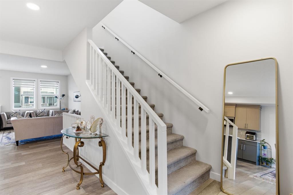 The main floor is bright and inviting, with large windows filling the living and dining areas with natural light. The standout kitchen is both stylish and functional, complete with a spacious quartz island, stainless steel appliances, ample cabinetry, and a large pantry—perfect for everyday living and entertaining.