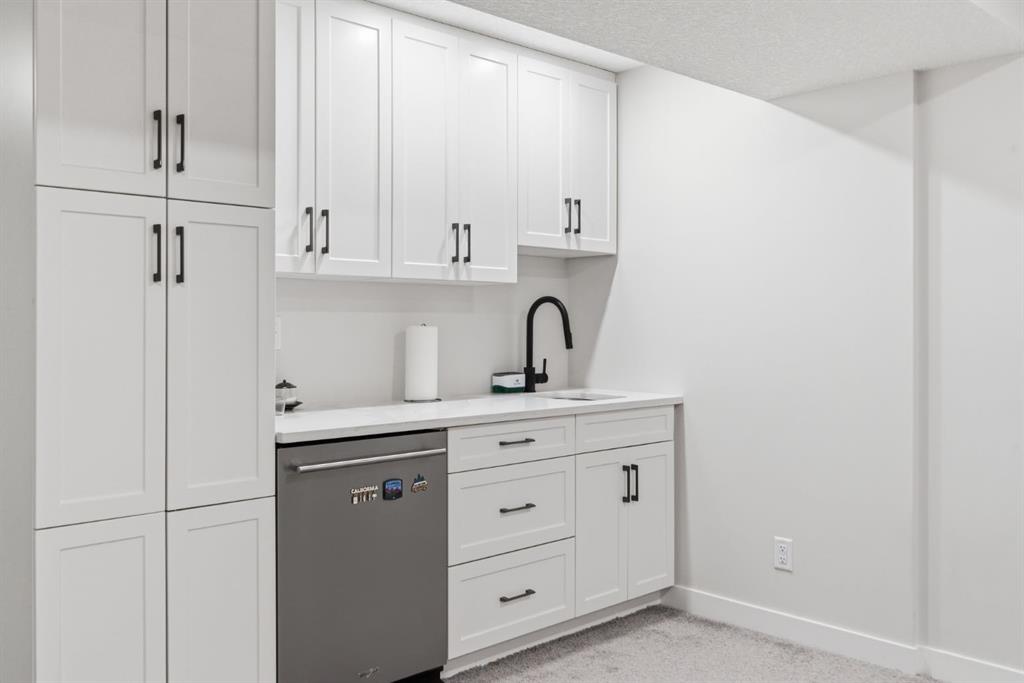The professionally finished basement adds even more living space, featuring a bright fourth bedroom, a full bathroom, and a spacious entertainment area with a wet bar, quartz counters, sink, and beverage fridge.