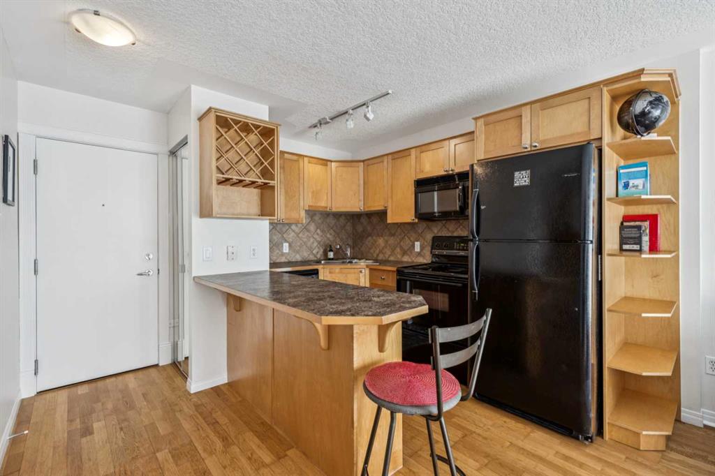 Welcome to this bright and beautifully maintained one bedroom condo in a quiet tree lined street in Lower Mount Royal- Steps to all the action and shopping on 17 Ave. This corner unit offers extra light and only one neighbour. Inside you'll find a well designed open- concept layout that maximizes space and function. The kitchen features an eating bar and ample cabinetry, flowing seamlessly into the South exposure, living room. Additional highlights include in-suite laundry, a full four piece updated bathroom, and a designated parking stall located just behind the unit. You can also access this building from the west side door bringing you straight to your unit. There is also an elevator at the front. entrance of the building. The storage in this unit is extensive and larger than most. This is an excellent opportunity for the first time home buyer, downsizer and or investors. enjoy the vibrant living of downtown living or relax in the quiet residential street. Book your showing today.