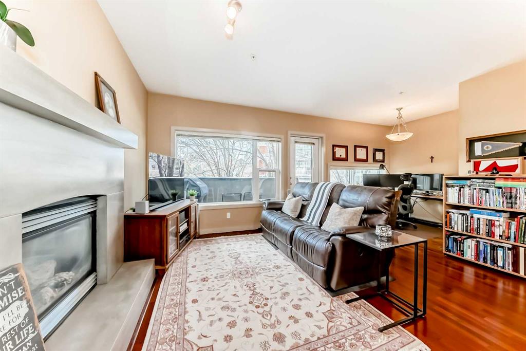 EXCEPTIONALLY WALKABLE LOCATION for this 2 bedroom, 2 bathroom condo spread over 921 square ft with titled underground parking and a LARGE STORAGE LOCKER. Enjoy the downtown lifestyle just steps away on trendy 17th Ave with shops and an array of restaurants. Located CLOSE TO SCHOOLS and BUS ROUTES. Walk or bike downtown, along the Bow River, and the many tranquil river pathways. Plus, just a short walk to the heart of Marda Loop for additional restaurant and shopping options. Welcome home to this STYLISH SANCTUARY offering a BRIGHT and SPACIOUS LAYOUT. Chef up some culinary wonders in the LARGE KITCHEN with stainless steel appliances, GAS STOVE, and large island. Relax in your living room in front of the CONTEMPORARY CONCRETE FIREPLACE that is bathed in SUNSHINE from the oversized windows. The adjacent dining room (or flex space) has plenty of room for meals or the additional space you need. IN-FLOOR heating will keep you warm and cozy. At the end of the day retreat to your primary bedroom with a built-in desk nook, walk-in closet, private ensuite with SOAKER TUB and SEPARATE SHOWER. Laundry is also conveniently located in the primary bedroom. The SECOND BEDROOM is right next to the second full bathroom. This WELL-MAINTAINED condo has a great combination of space and location you can’t pass up. You will also appreciate the SECURE GATED BUILDING. Come view this wonderful move-in ready home in an unbeatable inner-city location today!