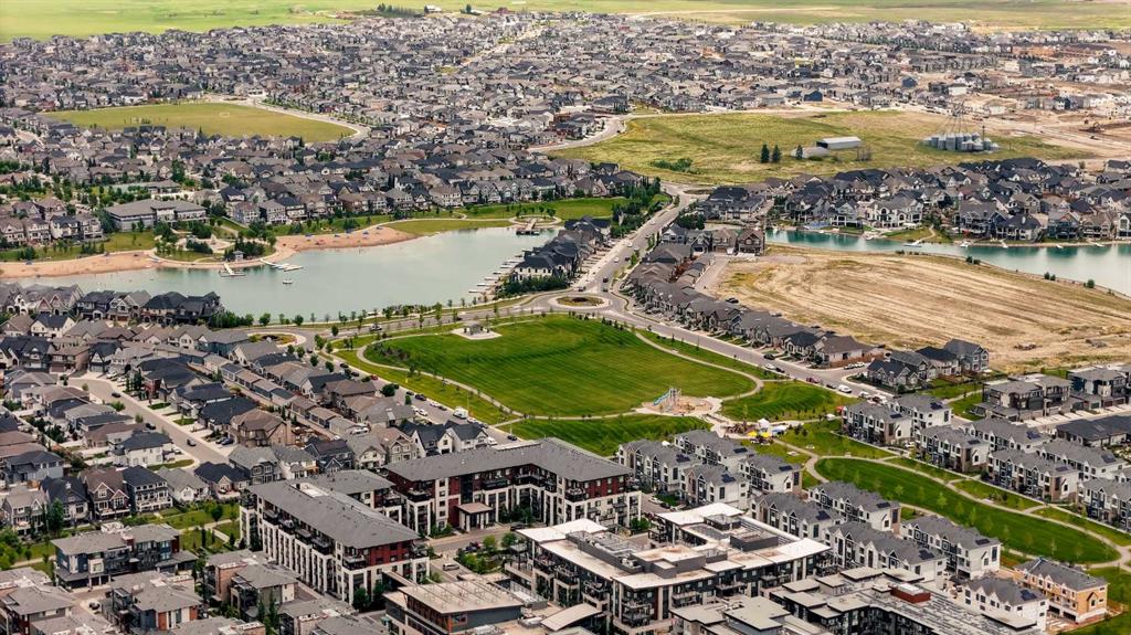 This well-designed semi-detached home in Mahogany blends functionality with comfort, starting with a long front hallway that offers generous closet space for shoes and jackets—ideal for busy households. As you move through the home, you're greeted by a stunning open-to-above area with soaring ceilings and natural light pouring in from windows above. The kitchen features a central island with seating and ample cabinetry. The adjoining dining and living areas are spacious and tied together seamlessly with warm hardwood floors. Directly connected to the dining area is the backyard deck, complete with a gas line hookup for your BBQ as well as landscaping for ease of use and beauty. Upstairs in the home, the primary bedroom offers a private retreat with large windows, a walk-in closet, and a full ensuite. A half wall overlooks the space below, allowing for even more light to filter through the home. Two additional bedrooms, a full bathroom, and a separate laundry room complete the upper level. The fully finished basement adds flexible living space with a full bathroom, large rec area, and custom storage options. The attached garage means protection for your vehicle and additional space for storage. The epoxy coated garage floor offers increased durability and easy cleaning. Additional highlights in this home include central air conditioning, a recently replaced water heater (2025), and convenient paved lane access; excellent benefits for an excellent home! Beyond the home itself, you'll love being just one block from Mahogany West Beach, where the lake, pathways, and park space offer year-round outdoor enjoyment. Quick, convenient access will make using the recreation amenities a breeze! With a true community feel and access to one of Calgary’s best lake communities, this home offers a lifestyle that’s hard to match.