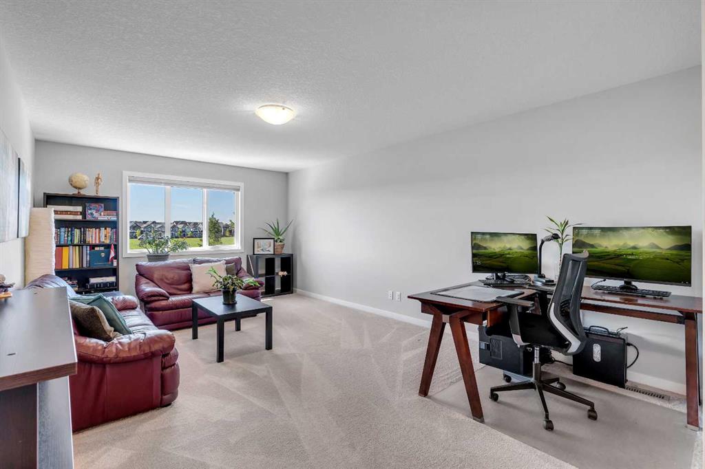 Welcome to 29 Masters Terrace SE – a beautifully designed two-story family home located in the highly sought-after, peaceful lake community of Mahogany. From the moment you step inside, you’re greeted by a grand front foyer and an impressive sense of space with 9 ft ceilings and luxury vinyl plank flooring throughout the main level. The open-concept design seamlessly connects the living, dining, and kitchen areas, creating the perfect flow for both family living and entertaining. At the heart of the home is the chef’s kitchen, showcasing full-height neutral cabinetry, quartz countertops, a large island, built-in wall oven, gas stove, and premium stainless-steel appliances. The extended dining nook opens directly onto your pressure treated deck, where you can sip your morning coffee or host summer BBQs while overlooking your beautifully landscaped, south-facing backyard. With mature trees, thoughtful design, and direct access to a large sports field and green space, this outdoor oasis is both private and functional. The upper level is designed with comfort and versatility in mind. A huge bonus room makes the ideal family retreat for movie nights, or a kids’ play area. A spacious laundry room with extra storage adds convenience. Two generously sized bedrooms provide plenty of space for the family, while the luxurious primary suite offers a walk-in closet and a spa-inspired ensuite featuring a quartz double vanity, soaker tub, and a separate glass shower. Additional highlights include: pleasant front curb appeal on a quiet street, mature landscaping front and back, functional and spacious main floor layout and water softener system included. This stunning Mahogany home combines elegance, functionality, and location. With south-backing green space and a thoughtfully designed interior, it’s a perfect fit for growing families who want both beauty and practicality.