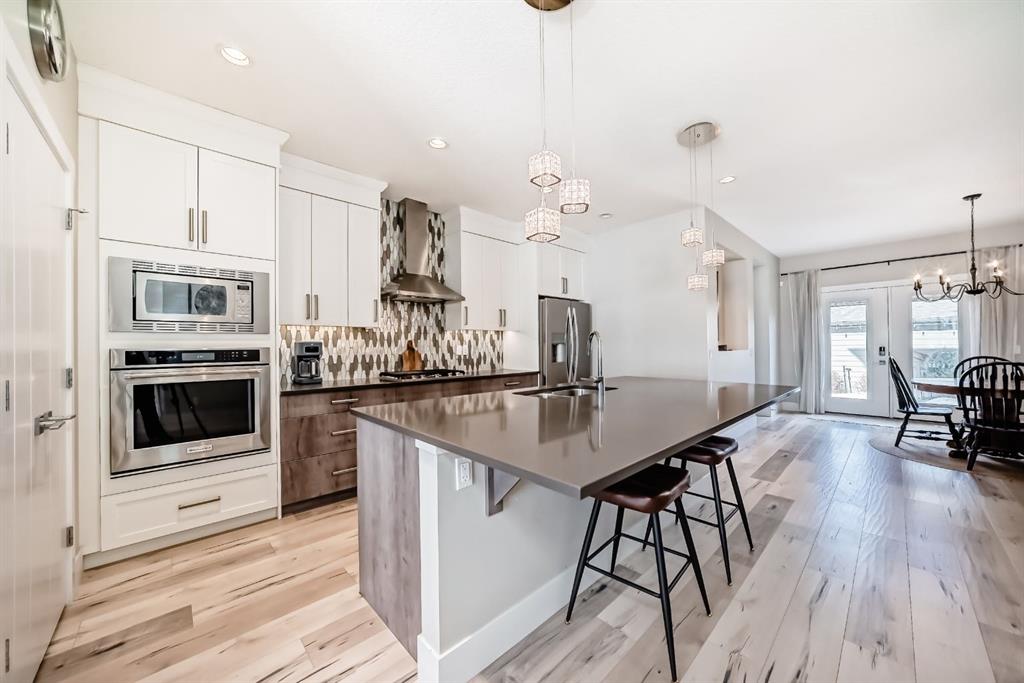 OPEN HOUSE: SUNDAY, APRIL 6, 2:00 - 4:00 PM. STUNNING EXECUTIVE LUXURY IN ESTATE AREA OF MAHOGANY GARDENS & COVE. Quality built by Baywest Executive Villas. A short walk to private Mahogany Beach Club facility (beach, swimming, gymnasium, racket sports, skating, all included in the HOA fees). Minutes to Westman Village (Alvins Jazz Club, Chairmans Club, shoppes, restaurants, breakfast, Analog coffee shop, pizza, dentist, pharmacy), Fully developed two storey home with over 2600 sq feet of living space featuring 3 oversized bedrooms, upper level laundry room (with side by side washer-dryer and sink), 3 and a half bathrooms, open main floor plan with spacious great room (unobstructed view of Mahogany Central Park Amphitheatre maintained by Mahogany Home Owners Assèn), gas fireplace with rock facing, gourmet kitchen with island, loads of Kingswood Interior designed cabinetry, quartz countertops, spacious dining room and two sets of doors to a spacious and low maintenance backyard. Double detached insulated & drywalled garage, paved back lane. Lower level fully developed with spacious family room (wet bar with wine fridge), oversized bedroom and a full bathroom. Lots of quality upgrades including: triple pane windows, luxury vinyl plank flooring, quality carpets throughout balance of home, quartz countertops in kitchen, upgraded kitchen package (gas countertop cooktop, stainless steel fridge, dishwasher), soft close cabinets and drawers, 9 ft ceiling throughout, bathrooms, low maintenance composite board exterior, heavy duty 8 ft front door, hard wired for security sensors. Low maintenance yard (no grass), underground irrigation system, established trees and bushes, spacious patio brick designed rear yard, excellent for entertaining with easy access through large French Doors from the kitchen-dining room. Extra street parking in front (2 spaces). A must to view.