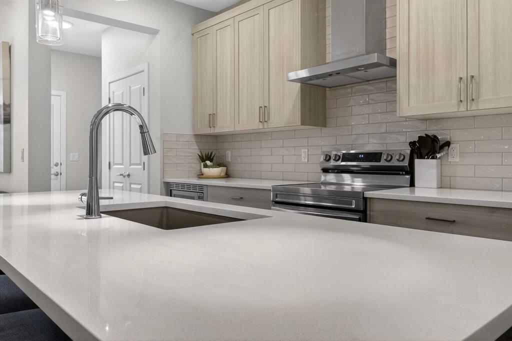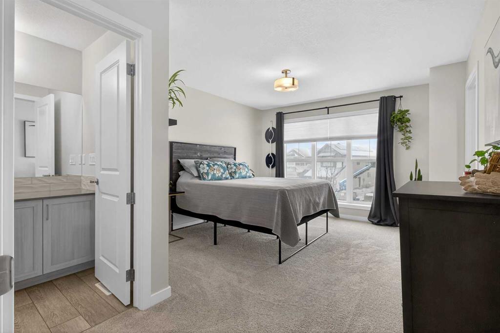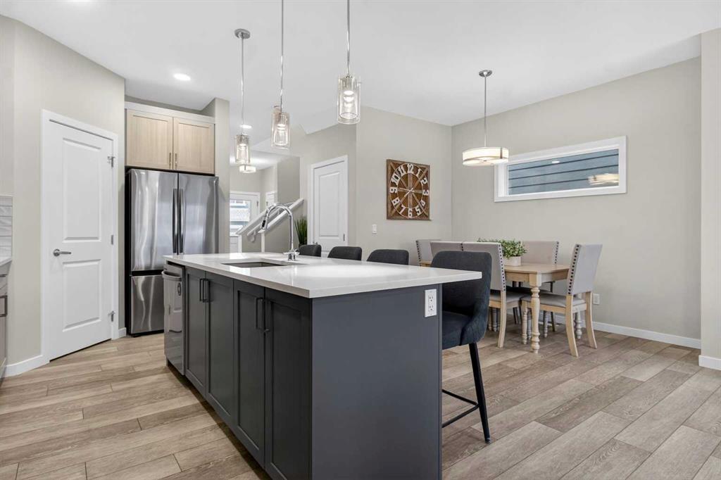 Located in the sought-after lake community of Mahogany, this upgraded and move-in ready home offers over 2,600 sq ft of developed living space, with 5 bedrooms, 3.5 bathrooms, and over $50,000 in thoughtful upgrades throughout. The main floor delivers both function and flow, with 9-foot ceilings and a bright, open-concept layout. A versatile front flex room adapts easily as a home office, sitting area, or playroom. The kitchen anchors the space with upgraded quartz countertops, extended cabinetry, upgraded appliances, and refined lighting and plumbing fixtures. An oversized 8-foot island provides additional seating and workspace, seamlessly connecting the kitchen, dining, and living areas. Upstairs features three well-sized bedrooms, a large bonus room, and the convenience of upper-floor laundry. The primary suite offers a walk-in closet and a well-appointed ensuite, creating a comfortable and private retreat. The professionally developed basement, completed by the builder, offers 9-foot ceilings, fire-rated separation, two additional bedrooms, a full bathroom, and a spacious recreation area. A separate side entrance and rough-ins for a future kitchen provide added flexibility for extended family or future legal suite potential (subject to City of Calgary approval). The exterior is equally well considered, with a fully fenced yard, a large rear deck, and a poured concrete pad ready for a future hot tub. The double detached garage is finished with durable Hardie board siding to match the home. All improvements have been completed with permits, and a compliant RPR is available. Mahogany is one of Calgary’s premier lake communities, offering year-round access to the lake, beaches, parks, pathways, playgrounds, schools, and the shops and restaurants of Westman Village just minutes away.With its size, level of finish, fully developed basement, and overall functionality, this property is competitively positioned within the Mahogany market—offering a level of space and upgrades that is increasingly difficult to find at this price point.