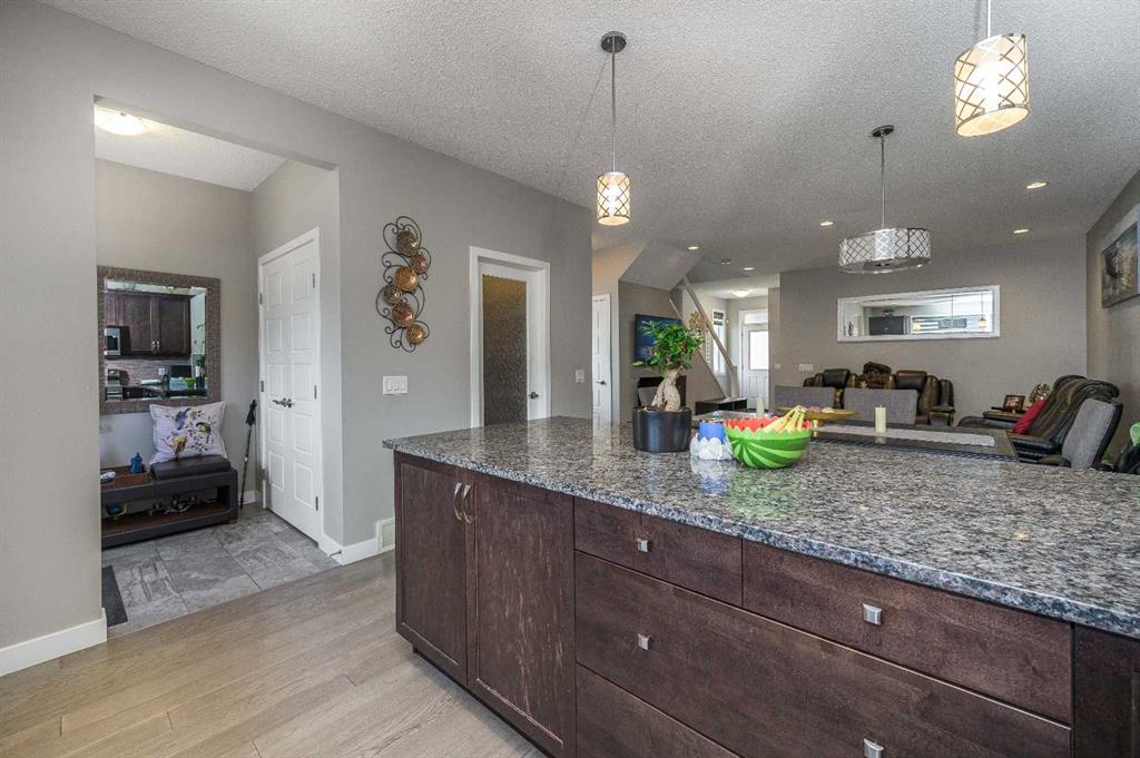 Situated on a corner lot, this home boasts an open-concept layout on the main floor, ideal for contemporary living and entertaining. The spacious living and dining area is complemented by an electric fireplace, while the well-appointed kitchen features a pantry and ample counter space. A rare main-floor bedroom and full bathroom provide flexibility for guests, accommodating multi-generational living or a private home office.