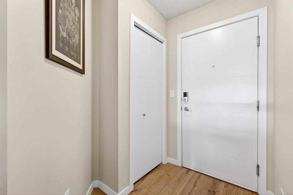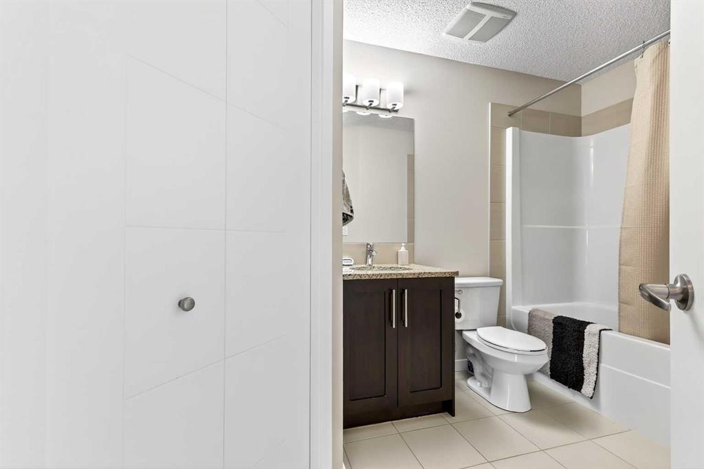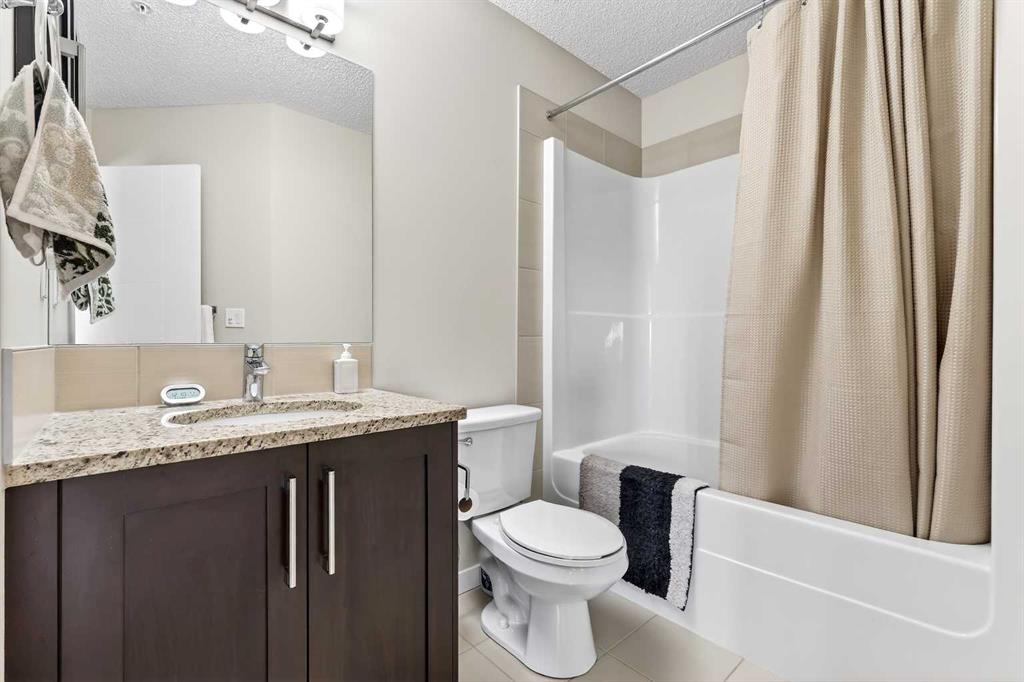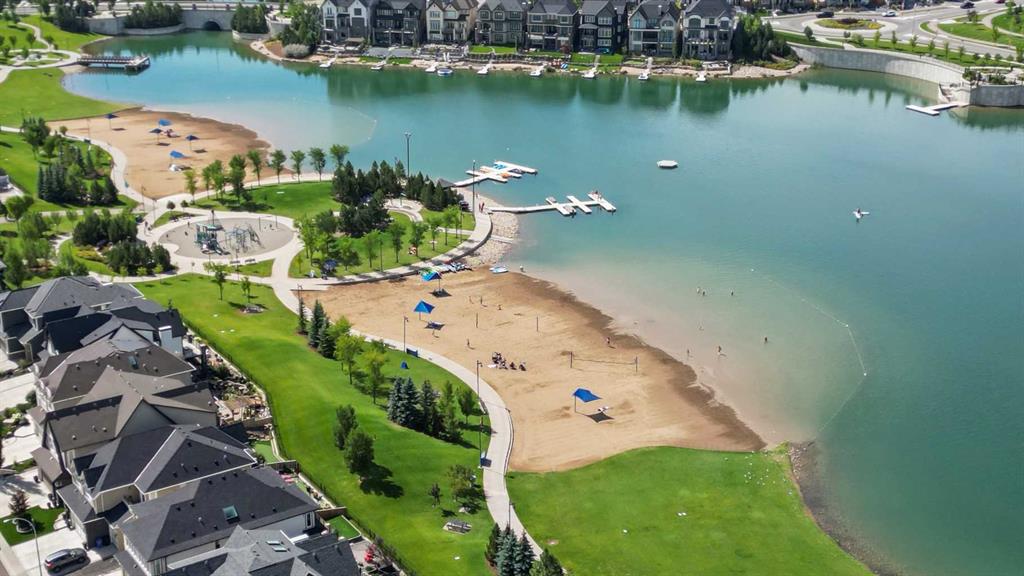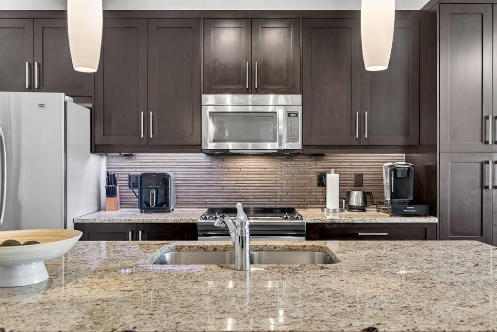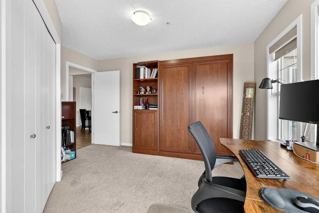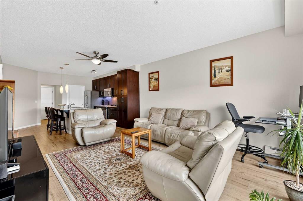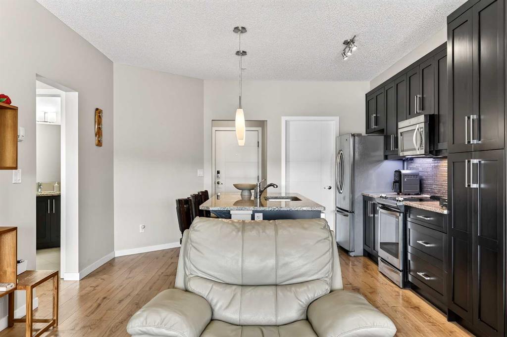 Welcome to Ebony in Mahogany—where elevated condo living meets the beauty and lifestyle of Calgary’s premier lake community. Perfectly positioned on the third floor with a coveted southwest exposure, this stunning and spacious apartment offers one of the largest floorplans in the complex, paired with an abundance of natural light and thoughtful design that sets it apart from the rest. From the moment you step inside, you are greeted by soaring ceilings just under 9 feet and oversized windows in both the living room and primary suite—creating a bright, open atmosphere that feels expansive and inviting. Bathed in warm evening sunlight, this home offers a truly special ambiance to be enjoyed throughout all four seasons. The kitchen is both stylish and functional, featuring rich dark cabinetry, elegant granite countertops, and a full stainless steel appliance package. A generous walk-in pantry provides exceptional storage and organization, while in-suite laundry adds everyday convenience. The kitchen flows seamlessly into the open-concept living and dining area, where warm-toned laminate flooring grounds the space and creates a cohesive, welcoming feel. The primary suite is a peaceful retreat, complete with a walk-through closet and a beautifully appointed 3-piece ensuite featuring granite countertops, timeless tile flooring, and an oversized walk-in shower with sleek glass doors. The second bedroom is equally impressive, offering a unique layout with a charming niche perfect for a reading nook, a Murphy bed for added versatility, and easy access to the 4-piece main bathroom—ideal for guests or family. This home is loaded with additional features that elevate everyday living, including air conditioning, a spacious private deck with BBQ gas line, and the rare bonus of two tandem parking stalls. Residents of Ebony also enjoy access to an on-site fitness facility, playground, visitor parking, and the added peace of mind that comes with nearby traffic-calming school zones. The location is simply unbeatable—just a few blocks from Mahogany’s private lake and beach club, and directly across the street from two schools. Enjoy endless opportunities for outdoor living with nearby parks, pathways, and playgrounds, along with convenient access to shopping, dining, and major routes in and out of the community. This is more than a condo—it’s a lifestyle defined by light, space, and the vibrant energy of lake living. If you’ve been searching for a home that offers exceptional design, incredible exposure, and everyday comfort in one of Calgary’s most sought-after communities, this is the one.