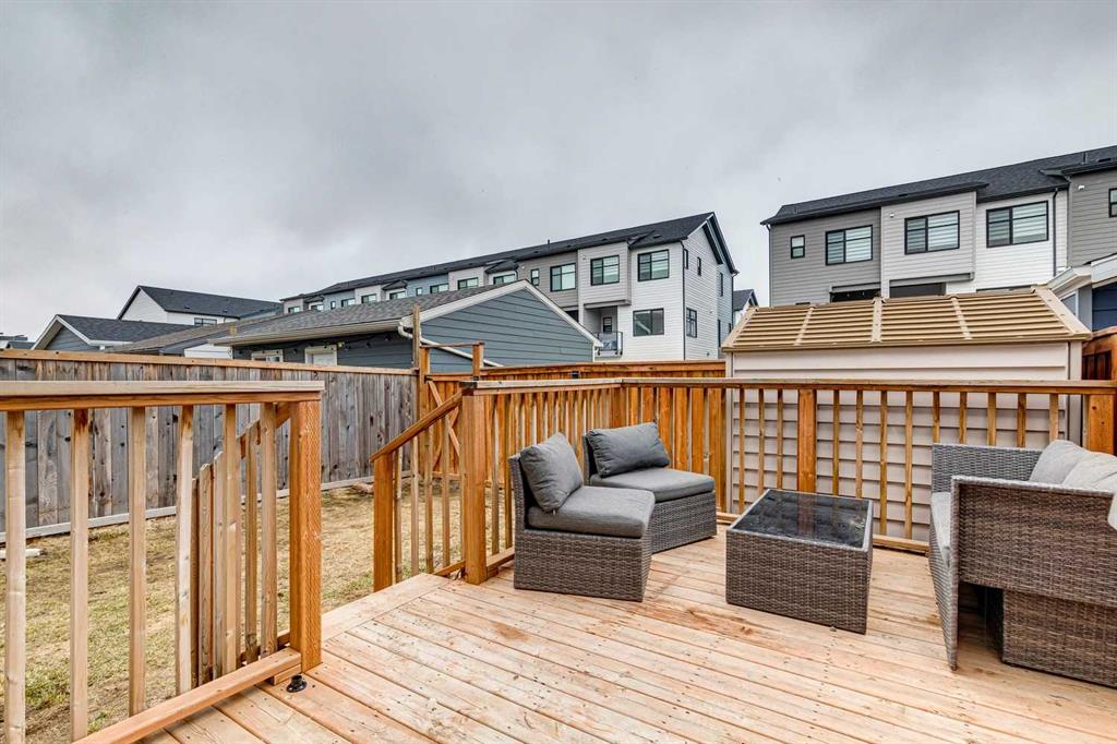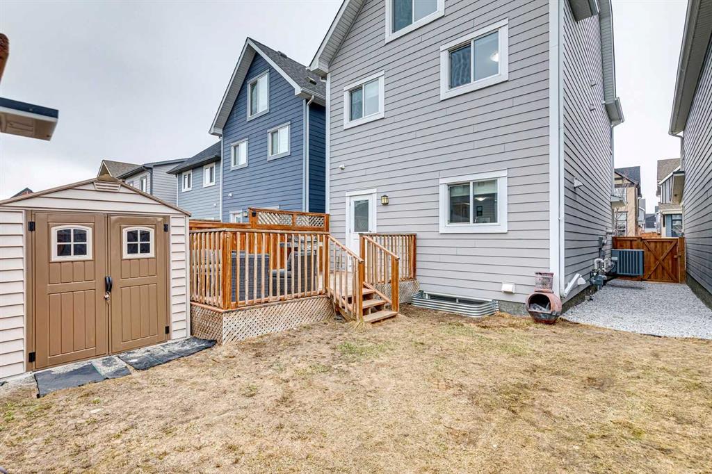 OPEN HOUSE - Sunday April 19, 12:30-2:30 - This unique two-and-a-half storey home in the heart of Mahogany offers the perfect blend of space, function, and style. A large, welcoming front porch sets the tone, leading into a spacious foyer with a practical pony wall that keeps everyday clutter tucked away from the main living space. The living room is warm and inviting with a gas fireplace, large windows that fill the home with natural light, and tasteful floating shelves that add character. The open-concept layout continues into a generous dining area, ideal for family meals or entertaining, and flows seamlessly into a bright kitchen featuring a large U-shaped counter, full-size appliances, pantry storage, and modern cabinetry accented with stylish gold details. Just around the corner, a convenient half bath and access to the fully fenced backyard make daily living easy, while the large deck and rear parking pad for two vehicles add even more functionality. Upstairs, the first upper level offers three bedrooms, including a primary retreat with a walk-in closet and private ensuite, while the other two bedrooms share a 4pc guest bath. Laundry on this floor also adds utmost convenience for families. The top floor creates a standout private space with an additional bedroom, full bathroom, and a versatile den—perfect for a playroom, home office, or quiet retreat. Recent upgrades, including new EVP flooring on the second and third floors (2025) and new carpet on the stairs (2025), bring a fresh, modern feel throughout. The unfinished basement is ready for your future vision. Living in Mahogany means access to one of Calgary’s most sought-after lake communities, known for its beautiful pathways, vibrant amenities, and year-round recreation. Residents enjoy exclusive lake access, nearby schools, shopping, dining, and an active, welcoming neighbourhood atmosphere that makes it easy to feel at home.
