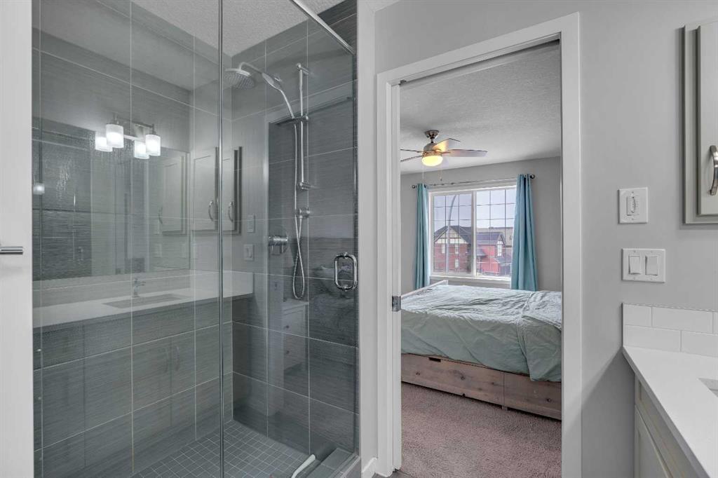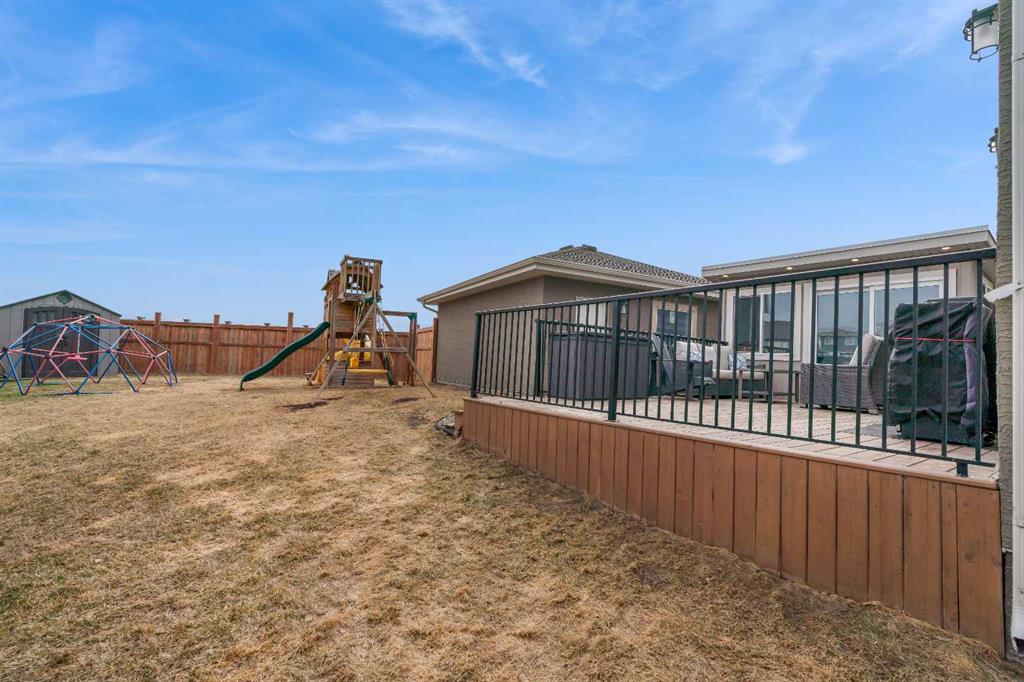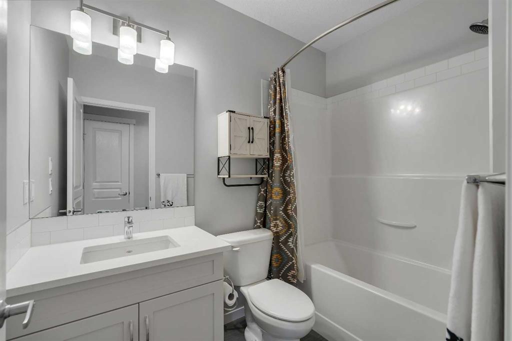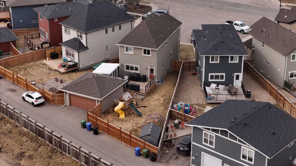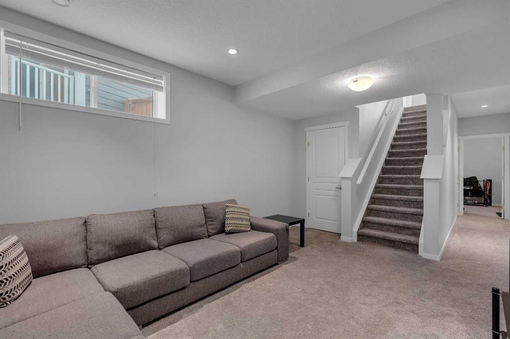 Welcome to Marquis Court! This air-conditioned, fully developed home offers over 2,200 sq. ft. of developed living space, plus a separate backyard office. The main floor features 9-ft ceilings, luxury vinyl plank flooring, and an upgraded kitchen with pot lighting, extended cabinetry, quartz countertops, white subway tile backsplash, stainless steel appliances including a gas range, a pantry, and a peninsula island with seating. The kitchen opens to a spacious dining area with an added window for extra natural light. The family room is bright and inviting, and an additional flex space provides room for a home office or whatever suits your needs. A functional mudroom with a storage bench and closet, along with a powder room, completes the main level. Upstairs, you’ll find a spacious primary bedroom with a walk-in closet and a well-appointed ensuite featuring an oversized tiled shower, double sinks, quartz countertops, and a soaker tub. There are two additional bedrooms—one with a walk-in closet and one with a closet organizer—along with the main bathroom and a convenient upper-floor laundry room with extra cabinetry and a hanging bar. The builder-developed basement includes a large rec room, bedroom, full bathroom, and plenty of additional storage. A standout feature is the separate backyard office, complete with electricity, heat, and air conditioning—an ideal work-from-home setup. The oversized backyard offers a large deck, double garage, and plenty of space to enjoy. Located just steps from the wetlands in the award-winning lake community of Mahogany, you’ll enjoy year-round amenities including beaches, skating, paddleboarding, walking paths, and parks, along with nearby schools, shopping, restaurants, and all essential services just minutes away.