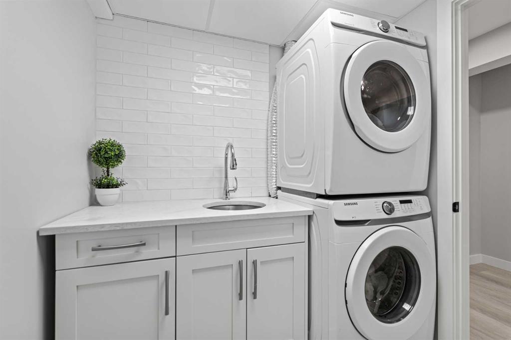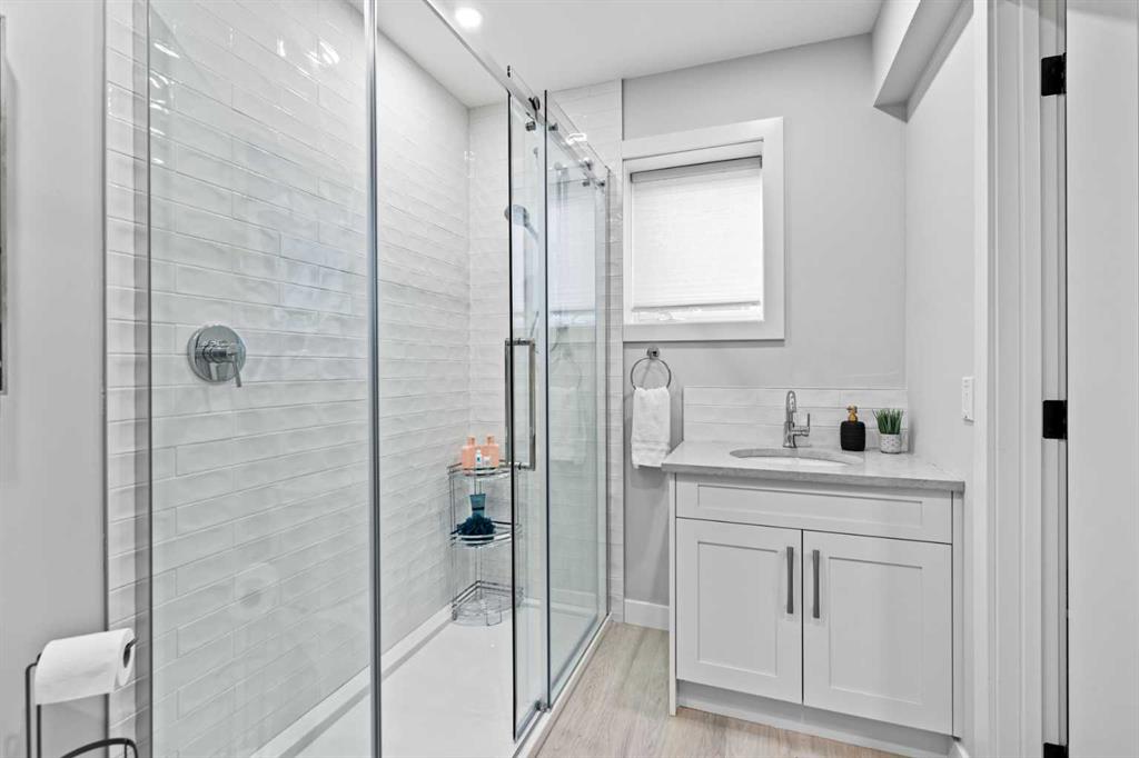 As you enter your new home, you are greeted with a welcoming foyer complete with glass railings and integrated storage. On the main level, you will find the beautiful living room, dining room, kitchen and breakfast nook all with large windows and vaulted ceilings that add to the open vibrant feeling of the space. Step into the gourmet kitchen, where culinary dreams come alive—Wolf, Miele, and Sub-Zero appliances including a built-in coffee maker, a gas cooktop island with granite waterfall counters, and custom cabinetry make this the heart of the home. The main level also features three spacious bedrooms, including a stunning primary retreat complete with a dual vanity ensuite, heated floors, and a spa-inspired walk-in shower. A stylish 4-piece main bathroom completes this level.