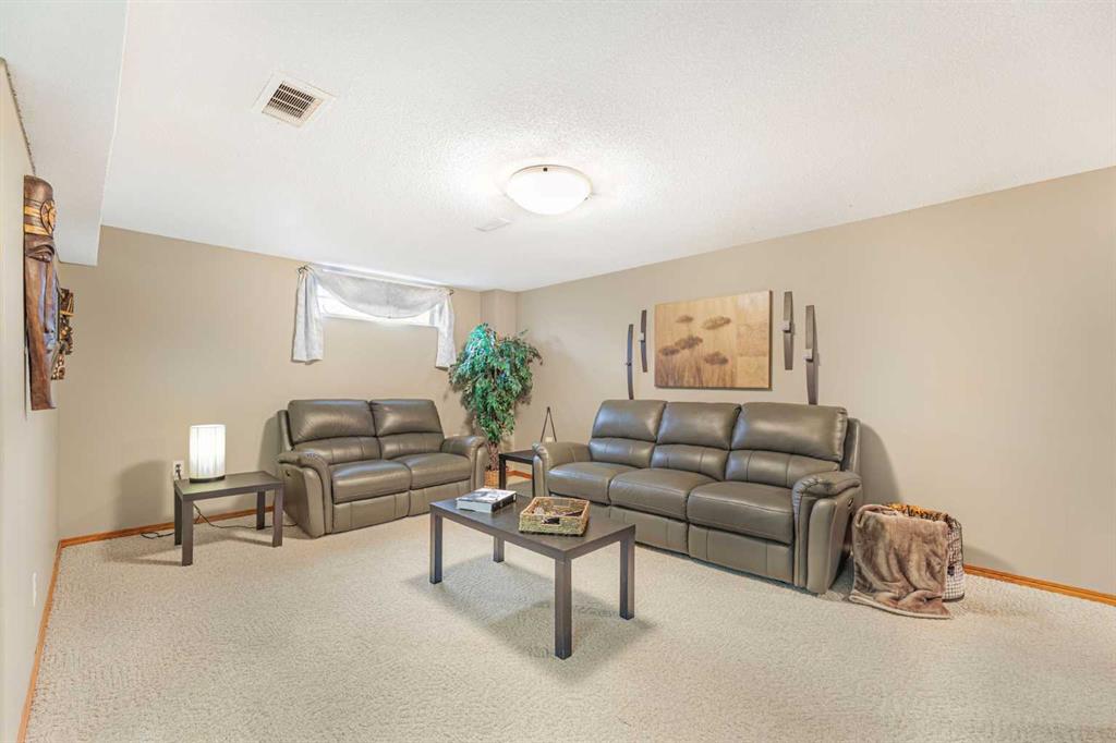 Welcome to this beautifully upgraded home with extra side yard, located just a short walk from the private lake, two schools, parks, river pathways and shopping. From the moment you step inside, you’ll be impressed by the grand vaulted entrance, showcasing inlaid tile flooring and a sense of timeless sophistication. The home has been extensively refreshed, the main floor features an updated half bath, a front flex room, a formal dining room, and a bright dinette that flows seamlessly into the living room, complete with a cozy gas fireplace for cooler nights. The completely renovated kitchen is a showstopper, boasting quartz countertops, new white slow-close cabinetry, custom backsplash, stainless steel appliances, undermount lighting, and thoughtful design throughout, perfect for both everyday living and entertaining. Upstairs, you’ll find four spacious bedrooms, a laundry room, and an open den area ideal for a home office or study nook. Both bathrooms have been fully renovated, including a four-piece main bath and a luxurious four-piece ensuite with high-end finishes. The fully finished basement expands your living space with two large rec rooms, a fifth bedroom, and another three-piece bathroom—offering flexibility for guests, hobbies, or family movie nights. Outdoors, enjoy the massive deck and patio designed for entertaining with a retractable awning, hot tub ready, and complemented by multiple storage sheds. Additional updates include a newer roof, upgraded vinyl windows, PEX plumbing, updated hot water tanks, a new furnace with heat pump, and a heated double attached garage—ensuring year-round comfort and peace of mind. This meticulously maintained home truly has it all: show home quality, modern upgrades and an unbeatable location in a family-focused community with access to excellent schools, golf courses, and the beauty of nearby Fish Creek Park and the Bow River. Quick access to Deerfoot and Stoney Trail ensures easy connectivity across the city. Call today for your own private showing!