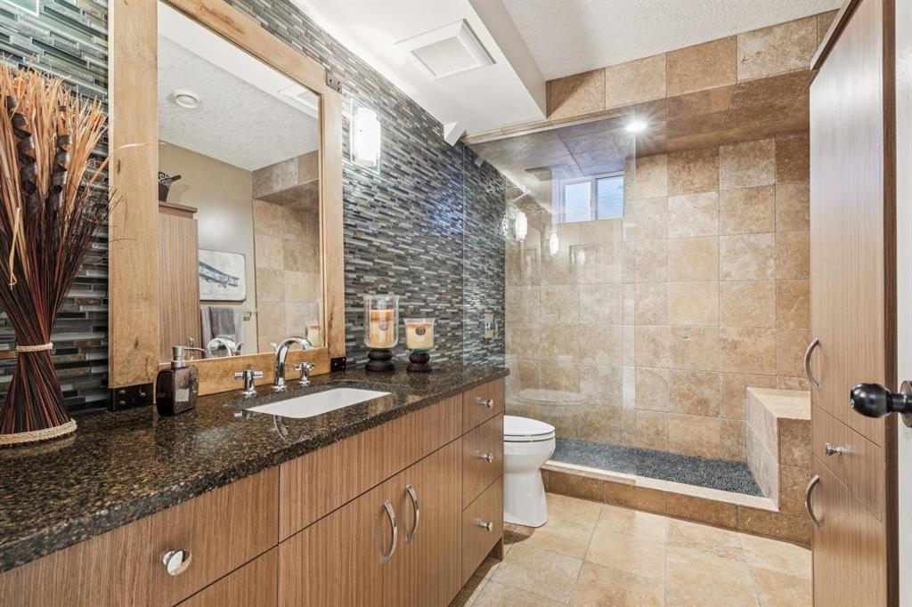 The fully finished walkout basement expands your living space with a fifth bedroom with custom cabinetry built ins, a spa-inspired bathroom with a walk in shower, a generous recreation area, and a full second kitchen offering modern custom cabinetry throughout and custom quartz countertops. — offering excellent flexibility for extended family or future potential (subject to city approval and permitting).