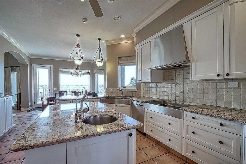 Custom walkout bungalow, backing onto Fish Creek Park with stunning West Bow River, Valley and Mountain Views. Offering over 4,500 sqft of living space, this impressive home features a grand foyer with open staircase, a great room with 20’ ceilings, two-sided fireplace, surround sound and wall-to-wall windows. Gourmet kitchen with stainless steel appliances, three sinks, large island, eating nook and granite throughout. Spacious 600 sqft vaulted loft adds flexible living space. The primary suite includes a 5-pc ensuite, walk-in closet with washer/dryer hookups, and patio access. Fully finished walkout level with cork flooring, media room, billiards area with bar and Sub-Zero package, three bedrooms (one with 4-pc ensuite). Professionally landscaped yard. Built with foam block concrete construction (1-ft walls) and in-floor hot water heat, HRV, boiler, ventilation system, triple car garage and ample storage. Please see full Virtual Tour.