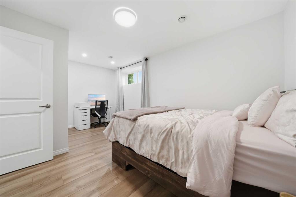 The fully developed basement features a separate entrance and is designed for income potential, complete with one bedroom, a full bathroom, a large living area, and a full kitchen. All permits are in place and the suite is fully approved by the city for short-term rentals (Airbnb). The basement also includes its own separate laundry, making it ideal for guests or tenants.