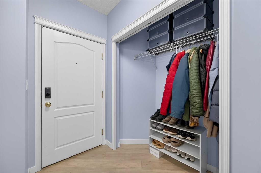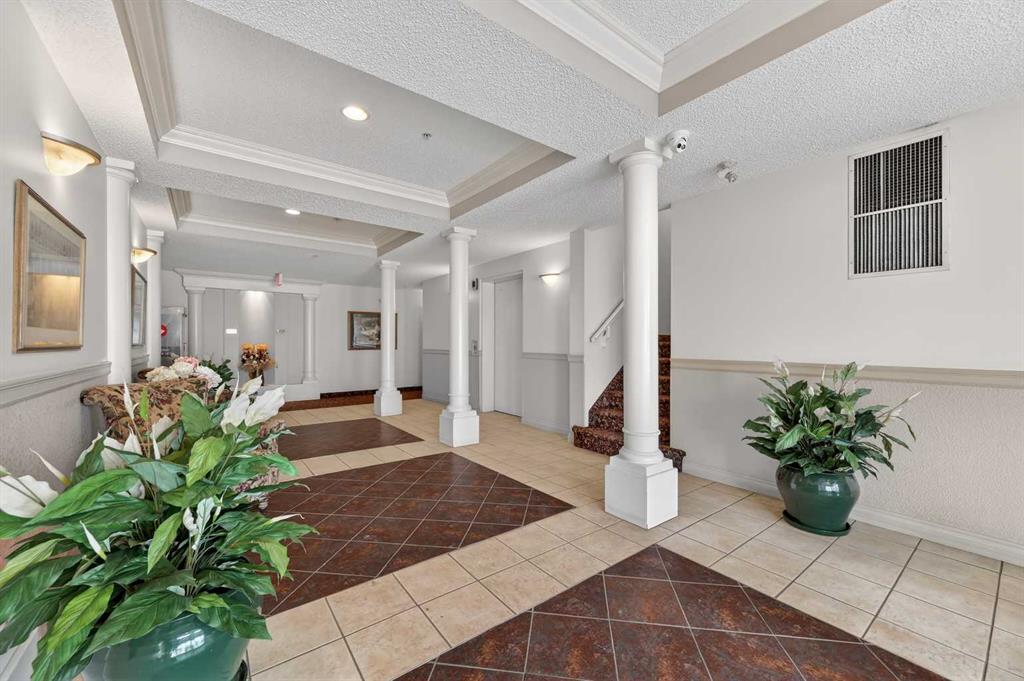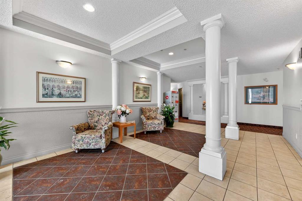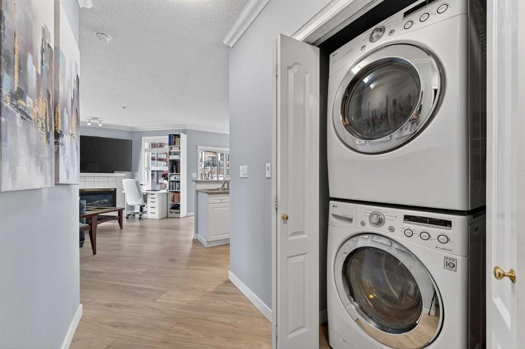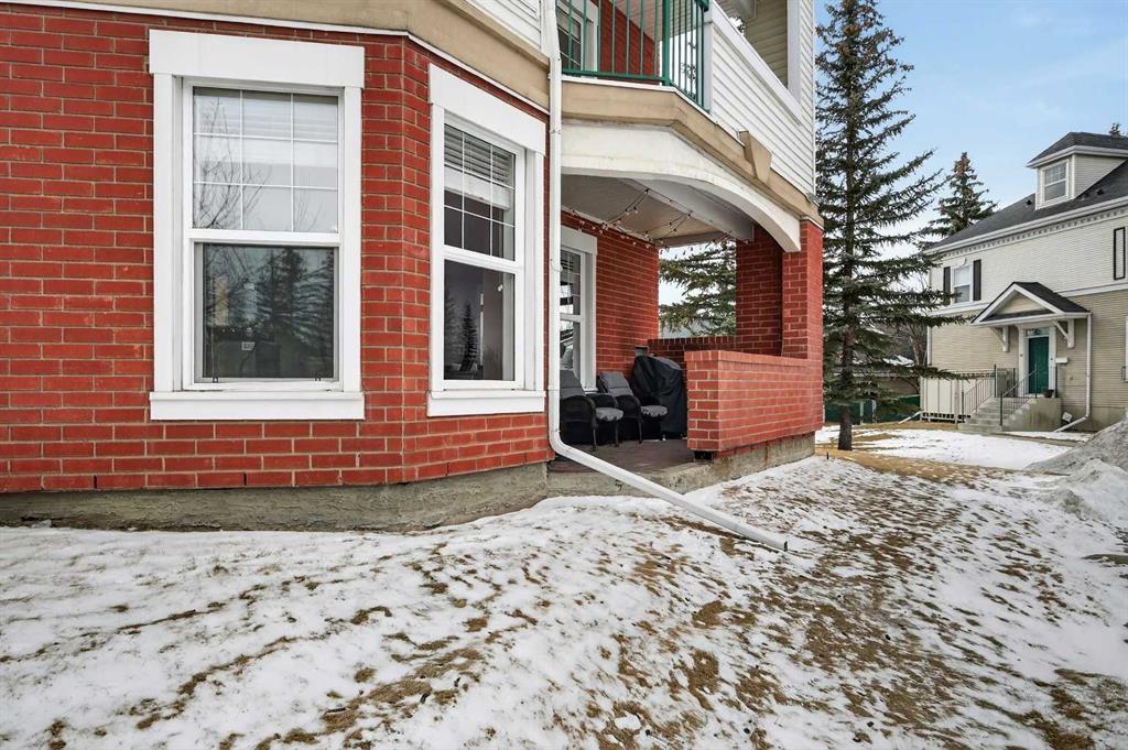 Welcome to this meticulously maintained main-floor condominium located in the highly desirable Highcastle complex, where comfort, convenience, and pride of ownership come together beautifully. Recently refreshed with brand new flooring and crisp new paint, this bright and inviting home showcases a modern, clean colour palette that feels both timeless and welcoming. Perfectly positioned at the end of the complex, this exceptional unit enjoys corner placement with additional windows, filling the home with natural light and creating a bright, airy atmosphere throughout. The charming brick patio walk-out offers direct access to the courtyard greenspace and nearby parking, creating a wonderful outdoor extension of your living space. A spacious foyer welcomes you inside, immediately showcasing the care and attention these owners have given the home. Warm luxury wood laminate flooring leads you into a thoughtfully designed open floor plan centered around a bright and functional kitchen. Crisp white cabinetry, tall upper cabinets with accent lighting, and a clean white subway tile backsplash create a fresh, contemporary feel. The central island with raised eating bar is perfect for casual dining, morning coffee, or gathering with friends. Large windows invite an abundance of sunlight into the generous living room where a corner gas fireplace with tile surround and mantle creates a cozy focal point, perfect for relaxing evenings at home. This well-designed layout offers two spacious bedrooms, thoughtfully separated for privacy. The primary bedroom features a large closet and a private three-piece ensuite, while the second bedroom is equally bright and inviting. Both bedrooms include ceiling fans for enhanced comfort and airflow. A full four-piece main bathroom, separate laundry room, and additional storage room complete the interior. Practicality meets comfort with a titled underground parking stall, making winter mornings effortless. A large private storage space conveniently located behind the stall adds even more functionality. With its premium exposure overlooking greenspace and a covered brick walk-out patio, this home offers the rare benefit of main-floor accessibility combined with privacy and outdoor enjoyment. The Highcastle complex truly feels like home, and its location is unbeatable—just steps from the vibrant amenities of High Street where you’ll find restaurants, groceries, cafés, fitness studios, and everyday conveniences. Commuting is also easy with quick access to Deerfoot Trail and 52 Street. This beautifully maintained condo offers the perfect blend of style, comfort, and location—an exceptional opportunity to enjoy effortless living in one of the area's most convenient communities.