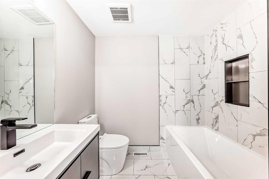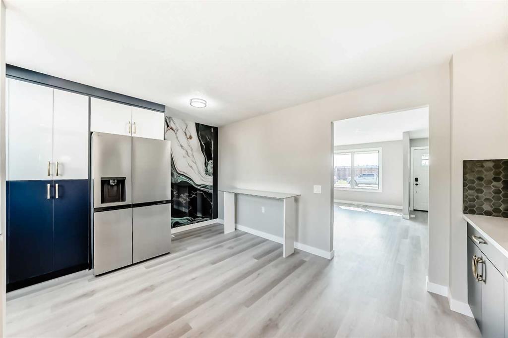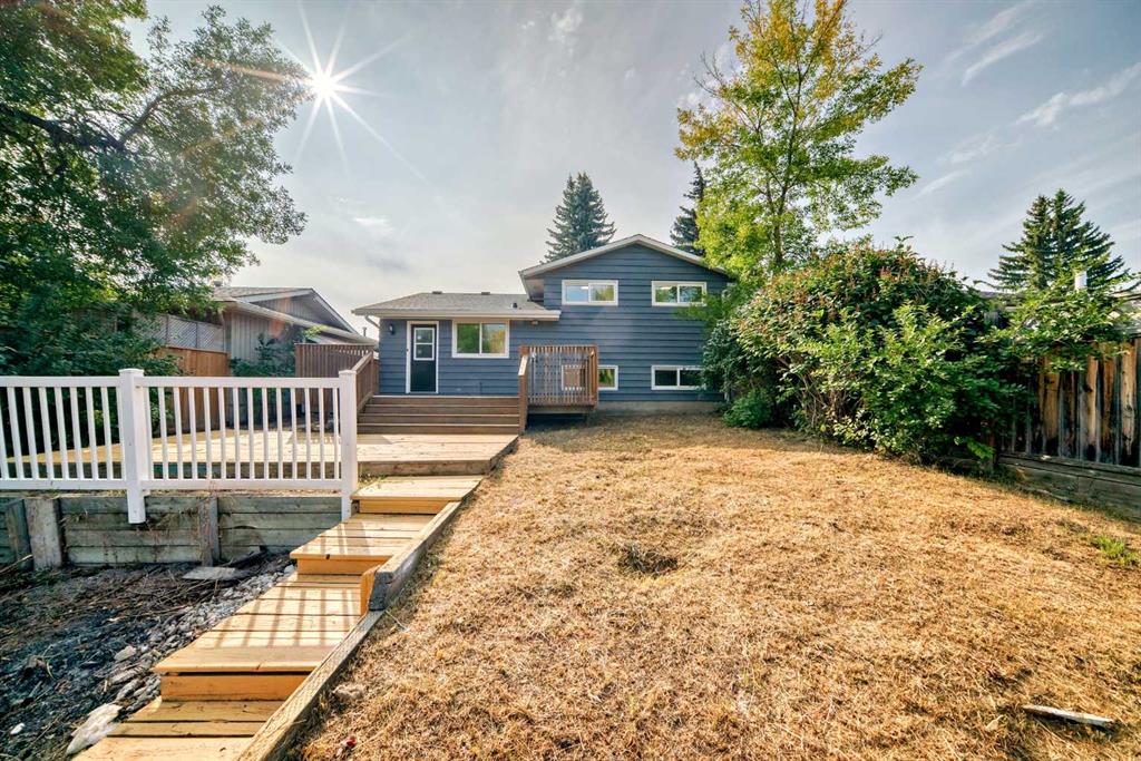 Welcome to this beautifully renovated 5-bedroom, 2-bathroom home in the desirable lake community of Midnapore in Calgary’s southeast. Featuring over 1,950 sq ft of finished living space across four levels, this move-in-ready gem offers the perfect blend of style, space, and location. Step inside to find a bright main floor with luxury vinyl plank flooring, modern lighting, and a spacious living room that opens into a show-stopping kitchen. The kitchen boasts high-gloss white upper cabinets, royal blue matte lower cabinets, soft-close drawers, quartz countertops, a tiled backsplash, new stainless steel appliances, a decorative bistro bar, and custom pantry storage leading to the backyard. Upstairs, you’ll find three bedrooms including a spacious primary suite with a custom walk-in closet and a fully renovated 4-piece spa-style bathroom. The third level offers a huge family room with an electric fireplace feature wall and built-in entertainment space, a large fourth bedroom with a walk-in closet, and a 3-piece jack-and-jill bathroom. The lower level includes a fifth bedroom with egress window and walk-in closet, plus a large utility/laundry room with a brand new washer and dryer, high-efficiency Goodman furnace, and water tank. Upgrades include new triple-pane windows throughout, a new roof, eaves, gutters, fresh exterior and interior paint, new front and back doors, and updated plumbing. Enjoy the newly landscaped front yard, two-tiered rear deck, new fencing, and a double detached garage currently under construction. Located on a quiet street, just steps to Fish Creek Park, schools, shopping, LRT, and with full lake privileges at Midnapore Lake, this is more than a home — it’s a turnkey lifestyle in one of Calgary’s best established communities.
