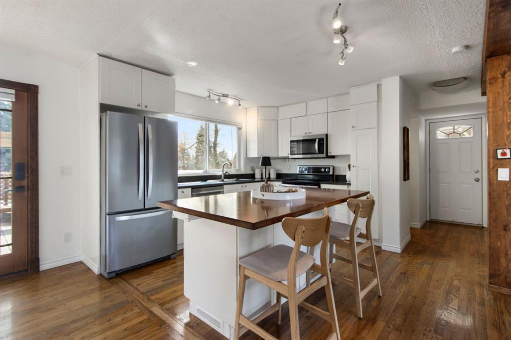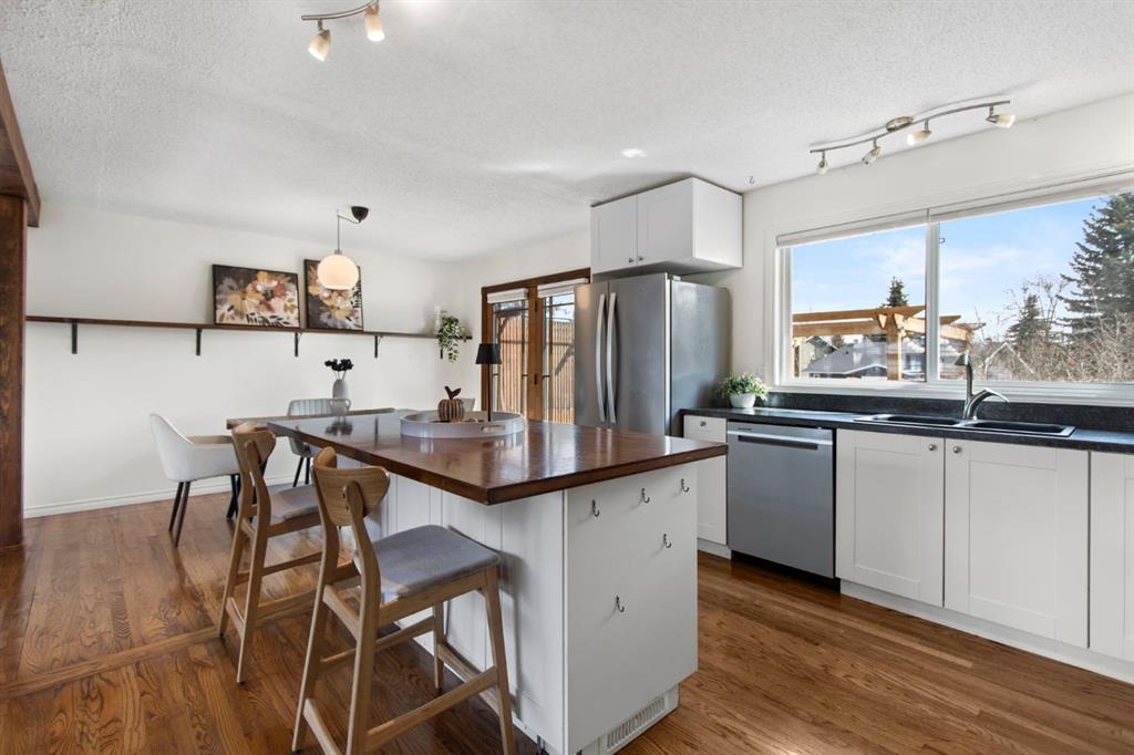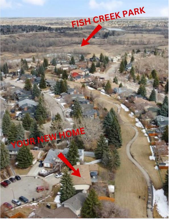 Located in one of the nicest pockets Midnapore has to offer, this home provides a million dollar lifestyle without the price tag! Backing DIRECTLY onto the green belt that leads into FISH CREEK PARK, this location is nearly impossible to beat at this price point. Situated on a quiet cul-de-sac, this home features 2,100 sq/ft of developed living space across 3 finished levels. Entering the main floor, you'll be wowed by the natural light connecting the large front windows to the SOUTH-facing back windows and backyard. This home has been renovated and opened up to allow for seamless sightlines and a more modern feel. With hardwood floors, a wood burning fireplace and beautiful wood patio doors, you still get the charm Midnapore offers. The main floor features a large living room with a beautiful northwest facing window, a wood burning fireplace, formal dining room with access to the backyard, and an updated kitchen with stainless steel appliances, an island and pantry with slideout drawers. The main floor includes a half bathroom. Heading upstairs, you'll find a four-piece bathroom, a large primary bedroom with a walk-in closet and 3 additional bedrooms to complete your 4 bedroom upper-floor plan, all with updated windows and AC to keep you cool in the summer. The developed basement is the perfect recreation space, playroom, gym, or family room—or all of the above. The open concept layout makes it very versatile and includes a 3 piece bathroom, storage room and mechanical room. The backyard oasis was thoughtfully created to maximize its use. With a large deck for sitting and relaxing that opens to your grass yard where kids can play, this backyard is functional for everyone in the family. The backyard is complete with a mature garden that complements the large lot surrounded by mature trees, a storage mezanine on the side of the home and a shed near the back fence. Stepping onto the green belt is where this home truly becomes special. Elevate your lifestyle with direct access to the 3,400 acres of nature that Fish Creek Park offers. This home is also just a few minutes walk to Midnapore Lake and close proximity to schools and the community centre. The lake offers year-round activities including beaches, tennis, basketball, pickleball, frisbee golf, paddle boarding, canoeing, skating, sledding, fishing, and family friendly festivals throughout the year.