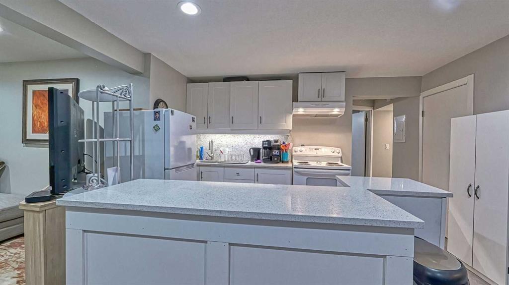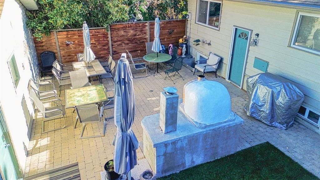 Welcome to this Keith-built bungalow in the sought-after lake community of Midnapore. Tucked on a quiet street ending at a footpath into Fish Creek Provincial Park, this home is also just a 10-minute walk to Midnapore Lake, offering year-round private access for swimming, paddleboarding, skating, and more. The home boasts excellent curb appeal with cedar siding, a poured concrete walkway, and a welcoming front deck—perfect for morning coffee or evening relaxation. The backyard is designed for outdoor living, featuring a 21’ x 22’ stone patio, wood-burning pizza oven, and built-in fireplace. Both front and back yards offer lush lawns with an underground sprinkler system. An oversized, heated double garage is insulated, drywalled, and equipped with its own electrical panel, built-in shelving, and a workbench. Inside, the spacious kitchen features quartz countertops, stainless steel appliances, a gas stove with dual-fuel oven, two pantries, and a large peninsula overlooking the open-concept dining and living area. The main floor is bright and inviting, with knockdown ceilings, pot lighting, and a large southeast-facing window. The fully renovated main bathroom includes modern tile, a contemporary vanity, and a walk-in shower. The primary bedroom offers a 2-piece ensuite, with two additional bedrooms nearby. A cleverly hidden stacked washer/dryer is located on the main floor behind a sliding barn door. Downstairs, recent mechanical upgrades include a new furnace (2025) and air conditioning (2023). The self-contained illegal suite features an open-concept layout with kitchen, living and dining areas, a 4-piece bathroom with in-floor heating, private laundry, storage, and two large bedrooms with egress windows. Currently rented for $1,500/month, it’s ideal for rental income, extended family, or guests. Located near excellent schools, parks, shopping, and dining, with quick access to Macleod Trail, this home combines comfort, convenience, and lifestyle in one exceptional package.