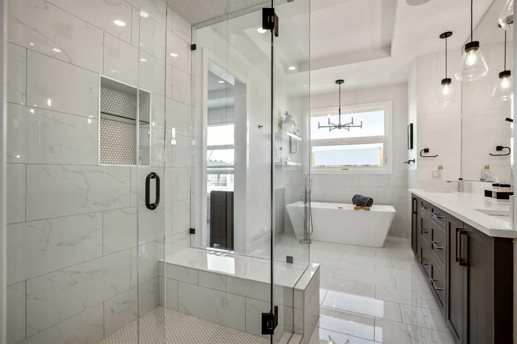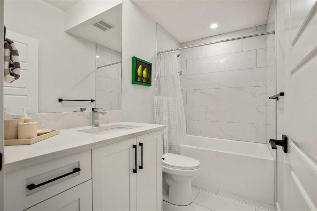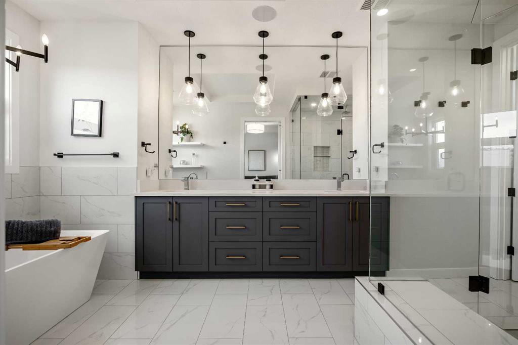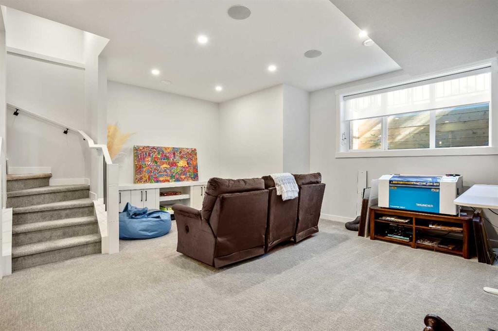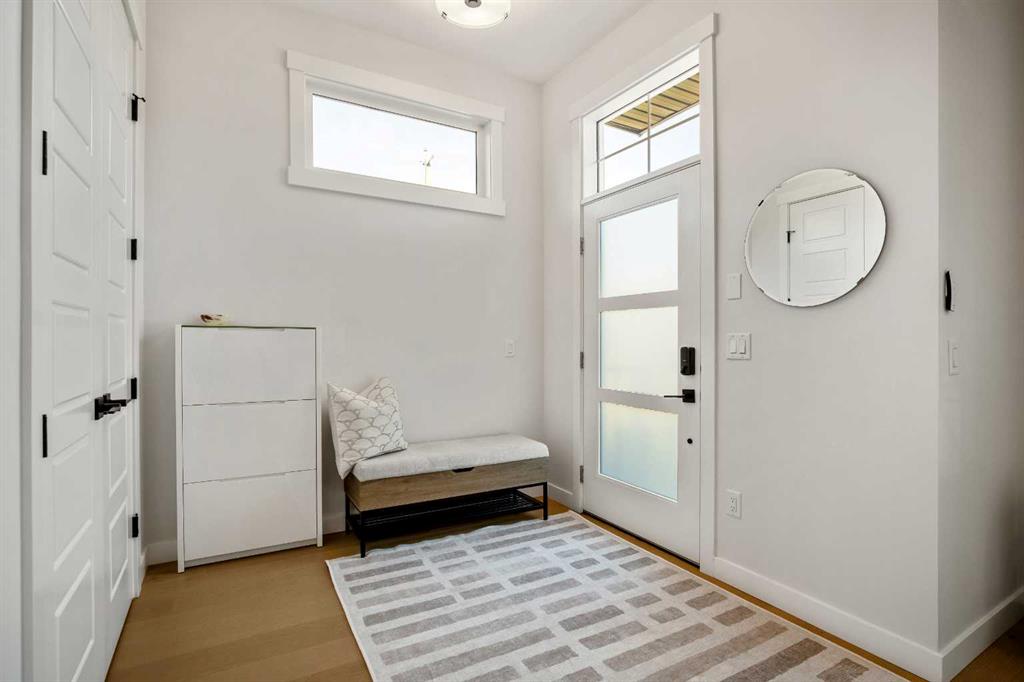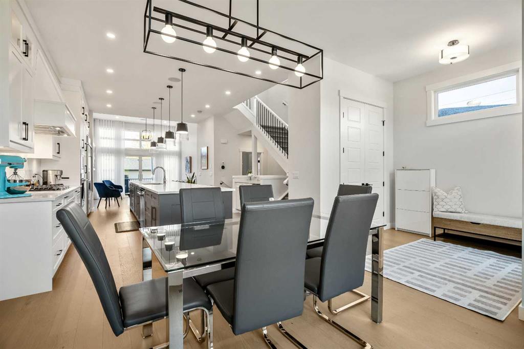 Situated on a quiet street in the highly sought-after community of Montgomery. As you enter this stunning home you will notice the abundance of natural light and that no detail was overlooked from the luxurious wide plank hardwood floors, high paint finish ceilings, 8’ solid core doors, elegant railing, in ceiling speakers and designer lights. The spacious front dining room opens to the central gourmet kitchen. This is a focal point with an expansive 16’ kitchen island, gorgeous quartz counters, a timeless herringbone tile backsplash, SS built in appliances including a gas cook top and wine fridge. All highlighted by a custom wood hood, two-tone cabinets that reach to the ceiling with glass inserts, under-cabinet lights, slow-close cabinet doors, as well as plenty of storage with additional built-in features such as spice racks and pull out details. The kitchen opens to the inviting living room with soaring 12’ ceilings, a distinctive gas fireplace with brick surrounds and built ins, plus floor to ceiling patio sliders creating a great indoor outdoor space, making this home ideal for entertaining. The sunny SOUTH backyard has a low maintenance vinyl deck and a BBQ gas line ideal for gatherings. Completing the main living area is a large mudroom with bench detail and private powder room with a full vanity. Upstairs you will find two bright well sized bedrooms, a large 4 pc bath and a convenient laundry room with plenty of storage and a sink. The primary retreat is on its own separate level creating a true oasis with a tray ceiling detail, large windows and a spacious walk in closets with built ins. The spa inspired ensuite includes heated floors, a stunning free standing tub, a massive tile shower, dual sinks with stone counters, and a private water closet. The lower level has a great rec room with a built in media center, a full wet bar including beverage fridge, floating shelves and wine racks. A 4 pc bath and fourth bedroom with a walk in closet perfect for guests or hosting gatherings. This home also offers the comforts of air conditioning, a vacu-flow rough in, plus a fully insulated and drywalled double detached garage with gas line rough in for a heater. Steps away from scenic parks, walking trails, cafes, restaurants and shopping. Schedule your private showing or view the virtual tour today.