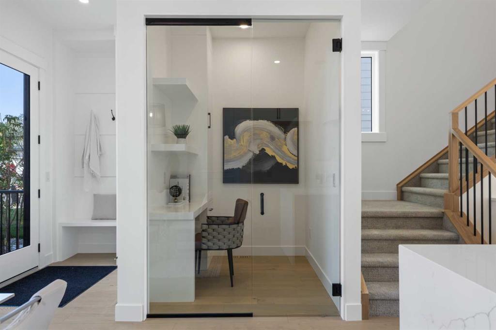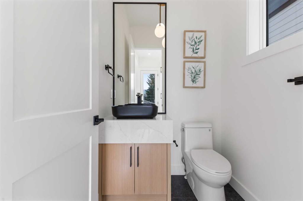 Welcome to a home where contemporary elegance meets everyday comfort in the heart of MONTGOMERY. Situated on a quiet street in this sought-after inner-city community, this stunning new build is designed with both style and function in mind, offering a thoughtfully crafted layout including a WALKOUT BASEMENT w/ COVERED PATIO SPACE, high-end finishes, and incredible natural light throughout. From the moment you step inside, the open-concept main floor makes an immediate impression. You’re greeted by a lovely glass wall in the front foyer, looking into the main floor home office with a built-in desk. The heart of the home is the designer kitchen—a perfect blend of modern aesthetics and practicality. A waterfall island anchors the space, complemented by custom cabinetry, quartz countertops, and top-tier appliances, including a gas range and French door fridge. A built-in pantry offers storage space, while a built-in coffee counter adds more cabinetry and room for small appliances. The front dining area is spacious enough for large gatherings, while the living room is designed for relaxation and entertaining, featuring a sleek gas fireplace and oversized patio doors that open to the upper deck and SOUTHWEST-FACING BACKYARD. A stylish built-in bench and hooks in the mudroom provide everyday convenience, and a chic powder room completes the main level. Upstairs, the primary suite is stylishly finished with a tray ceiling and a spacious walk-in closet with custom built-ins. The generous ensuite is a masterpiece, featuring a freestanding soaker tub, a walk-in shower with a bench, dual vanities, and elegant finishes. Two additional bedrooms each have built-in closets, while a beautifully finished main bath adds even more functionality along with the full laundry room with tile floor and built-in cabinetry. The legal 2-BED LOWER SUITE (subject to permits and approval by the city) is a fully independent living space featuring a modern kitchen with full-height cabinetry, quartz countertops, and a stainless steel appliance package. The thoughtful layout includes a bright living room, two spacious bedrooms with built-in closets, a stylish 4-piece bath, dedicated laundry, and a private backyard entrance. The highlight of this space, though, is the full WALKOUT PATIO – the covered space is perfect for enjoying the outdoors year-round, with the additional convenience of a fully private entrance! Located in Montgomery, this home offers an unbeatable lifestyle. Enjoy quick access to the Bow River pathways, Shouldice Park, and Winsport, perfect for outdoor enthusiasts. The community is home to fantastic local restaurants, trendy coffee shops, and boutique shopping while offering easy access to Market Mall, Foothills Hospital, the University of Calgary, and major roadways for a seamless commute. Don’t miss your chance to own this beautifully designed home in one of Calgary’s most desirable neighbourhoods!