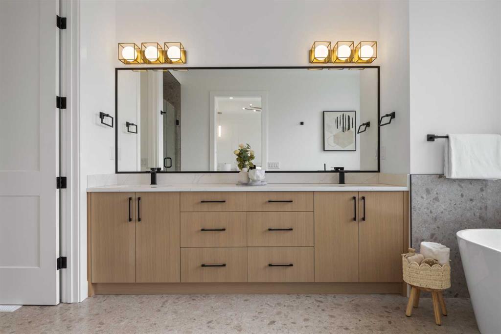 Welcome to a home where contemporary elegance meets everyday comfort in the heart of MONTGOMERY. Situated on a quiet street in this sought-after inner-city community, this stunning new build is designed with both style and function in mind, offering a thoughtfully crafted layout including a WALKOUT BASEMENT w/ COVERED PATIO SPACE, high-end finishes, and incredible natural light throughout. From the moment you step inside, the open-concept main floor makes an immediate impression. You’re greeted by a lovely glass wall in the front foyer, looking into the main floor home office with a built-in desk. The heart of the home is the designer kitchen—a perfect blend of modern aesthetics and practicality. A waterfall island anchors the space, complemented by custom cabinetry, quartz countertops, and top-tier appliances, including a gas range and French door fridge. A built-in pantry offers storage space, while a built-in coffee counter adds more cabinetry and room for small appliances. The front dining area is spacious enough for large gatherings, while the living room is designed for relaxation and entertaining, featuring a sleek gas fireplace and oversized patio doors that open to the upper deck and SOUTHWEST-FACING BACKYARD. A stylish built-in bench and hooks in the mudroom provide everyday convenience, and a chic powder room completes the main level. Upstairs, the primary suite is stylishly finished with a tray ceiling and a spacious walk-in closet with custom built-ins. The generous ensuite is a masterpiece, featuring a freestanding soaker tub, a walk-in shower with a bench, dual vanities, and elegant finishes. Two additional bedrooms each have built-in closets, while a beautifully finished main bath adds even more functionality along with the full laundry room with tile floor and built-in cabinetry. The legal 2-BED LOWER SUITE is a fully independent living space featuring a modern kitchen with full-height cabinetry, quartz countertops, and a stainless steel appliance package. The thoughtful layout includes a bright living room, two spacious bedrooms with built-in closets, a stylish 4-piece bath, dedicated laundry, and a private backyard entrance. The highlight of this space, though, is the full WALKOUT PATIO – the covered space is perfect for enjoying the outdoors year-round, with the additional convenience of a fully private entrance! Located in Montgomery, this home offers an unbeatable lifestyle. Enjoy quick access to the Bow River pathways, Shouldice Park, and Winsport, perfect for outdoor enthusiasts. The community is home to fantastic local restaurants, trendy coffee shops, and boutique shopping while offering easy access to Market Mall, Foothills Hospital, the University of Calgary, and major roadways for a seamless commute. Don’t miss your chance to own this beautifully designed home in one of Calgary’s most desirable neighbourhoods! *Photos from show suite finishes may vary*