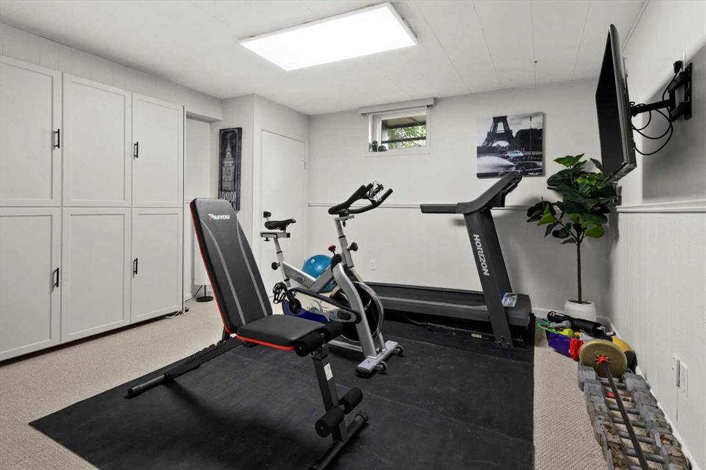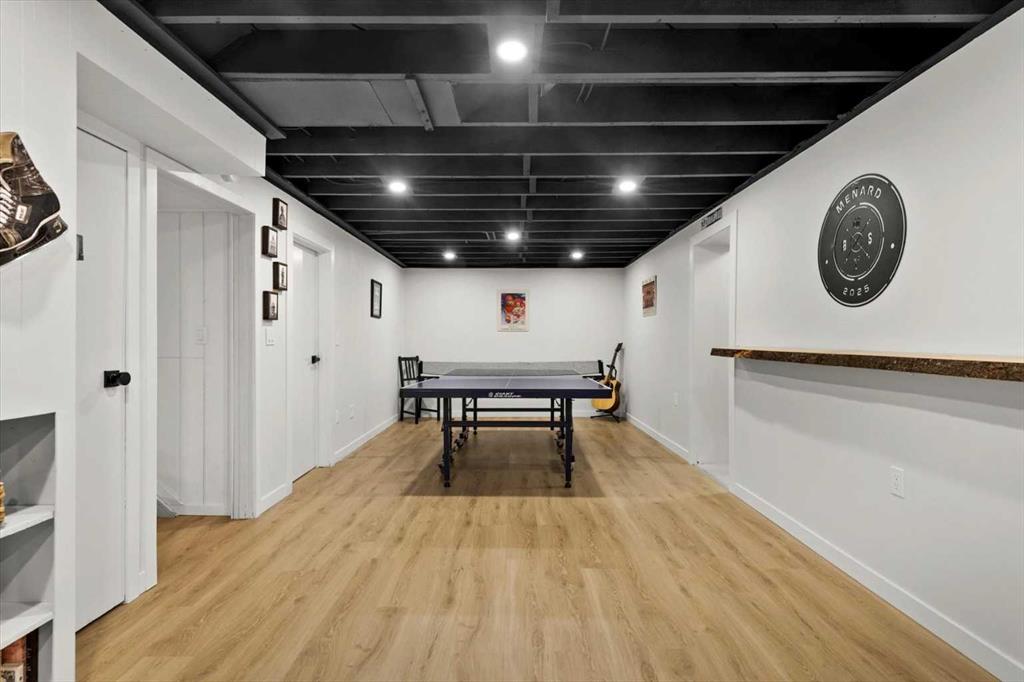The main level also features an upgraded bathroom and two well-appointed bedrooms. Descending to the basement, you’ll find a versatile third bedroom and full bathroom, outfitted with a Murphy bed, making it perfect as a guest retreat or workout space. The spacious laundry room offers ample room for storage and organization, while the adjoining hobby shop has long been a cherished space for the sellers’ home projects and renovations.