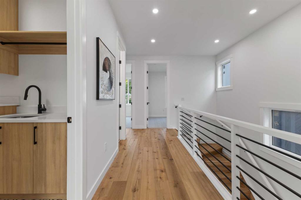 This BRAND NEW, MOVE-IN READY infill in MONTGOMERY checks all the boxes for stylish, functional inner-city living—with the added bonus of a fully private 1-BED LEGAL WALKOUT SUITE. Whether you're looking for extra income, space for guests, or a little more flexibility in your day-to-day, this one delivers. Step inside to a bright, welcoming foyer with a full coat closet—simple, clean, and easy to come home to. At the front of the home, the dining area offers space for a full-size table and flows naturally into the heart of the home: the kitchen. The kitchen brings a timeless feel with classic SHAKER-STYLE CABINETS, a custom-built hood fan with oak accents, glass display shelves with LED lighting, and a quartz-topped island with waterfall edges. You’ll also find an upgraded KITCHENAID APPLIANCE PACKAGE, including a gas range with pot filler and a large KitchenAid French door fridge. There’s also a convenient coffee or beverage station, complete with room for a beverage fridge. The living room is warm and elevated, featuring an INSET GAS FIREPLACE with full-height tile surround and built-in display shelving with closed cabinetry for extra storage. Natural light pours in through large rear sliders, leading out to the sunny SOUTHWEST-facing back deck with privacy screens already installed. Off the rear entry, the mudroom includes built-in shelving, a bench, and cubbies, with access to the powder room—private, polished, and finished with a skirted quartz counter and decorative framed mirror. Upstairs, the primary suite is a calm retreat with a tray ceiling, spacious walk-in closet, and a stunning ensuite that includes a freestanding soaker tub, walk-in shower with DUAL RAIN HEADS, and double vanity. Two more bedrooms, a full bath with attractive STACKED HORIZONTAL TILE, and a laundry room with designer tile flooring complete the upper level. Downstairs, the WALKOUT SUITE is bright, smartly designed, and full of quality finishes. The living room has a BUILT-IN FLOATING MEDIA CENTRE, and the full kitchen mirrors the same modern style as upstairs, with warm oak flat panel cabinetry and quartz countertop. There’s a full bathroom, stacked laundry, and a large bedroom with walk-in closet—plus its own separate entry for total independence. Montgomery offers easy access to main routes like 16th Ave and Memorial Drive while keeping you steps from nature. Walk to Shouldice Park, Bowmont Park, and the Bow River Pathway system for daily runs, dog walks, or weekend bike rides. You're minutes from Montalcino Ristorante, NOtaBLE, and lots of local coffee shops, restaurants, and bars for food and coffee favoUrites. Groceries, schools, Market Mall, U of C, and Foothills & Children's Hospitals are all close by, making this one of Calgary’s most livable and up-and-coming inner-city communities. Call today to view! *Photos from Show Suite