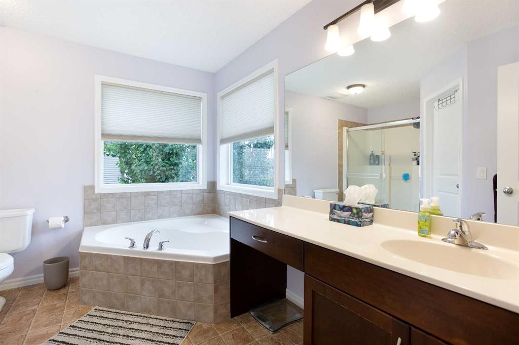 Upstairs, you get three generously sized bedrooms including a primary suite fit for a king-sized bed and your questionably necessary pillow collection. The ensuite features a deep soaker tub for those “don’t talk to me” nights, a separate shower, and enough counter space to finally stop fighting over the sink. The bonus room boasts 11-foot ceilings—perfect for a movie marathon, kid chaos zone, golf simulator, or adult escape pod.