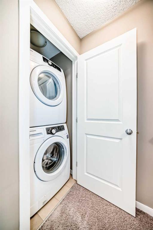 YOUR NEW HOME ... is located in one of Calgary's most sought after family friendly communities, this 2 storey townhome offers the perfect blend of style, comfort, and convenience. Steps from schools, playgrounds, daycare, and the New Brighton Athletic Park, future LRT, South Campus. You will also enjoy quick access to 130 ave shops, McKenzie Townes High Street and access to major routes like Stoney, Deerfoot trail and 52 st. Inside, oversized windows and tall ceilings fill the open concept layout with natural light. The kitchen features upgraded wood cabinetry, black appliances, a classic tile backsplash, and a large eating bar-ideal for both everyday living and entertaining. The main floor also includes a spacious dining area, inviting living room with brand new durable laminate flooring and convenient powder room. Upstairs, you'll find two large primary bedrooms, each with their own private ensuites and walk in closets - perfect for families, professionals or room mates. They are separated at each end of the hall, giving lots of privacy. Your laundry facilities are also on this floor, for the utmost of convenience. Additional highlights include a lower deck, an upper deck off of the kitchen with a gas hook up, a single attached garage and a second covered parking pad. The grounds are meticulously maintained and pride of ownership is exuded through the entire complex. Located in the middle of the complex and far away from 52st noise, the Low condo fees add to another reason to love living here, oh, and a new hot water tank and above the stove microwave was just installed.