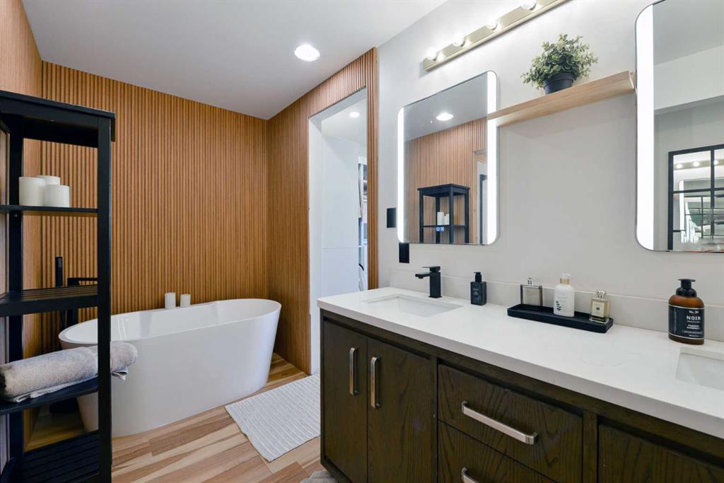 ** Open House Saturday October 18th from 11:30AM - 1:00PM! ** Welcome to this beautifully renovated over 2000sq ft mid century modern bungalow on a huge lot with an abundance of natural sunlight throughout the day on a sprawling lot in Calgary’s highly desirable inner-city community of Lakeview. This home has been thoughtfully transformed by its current owners—who had no plans to move—showcasing premium finishes, new lighting, fresh paint, and modern flooring throughout. The main level features three spacious bedrooms, including a serene primary suite with a private ensuite, while the lower level offers an additional bedroom ideal for guests or extended family. The massive private backyard offers 3 separate areas getting East, South and West sun.