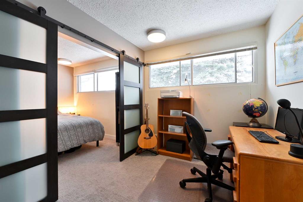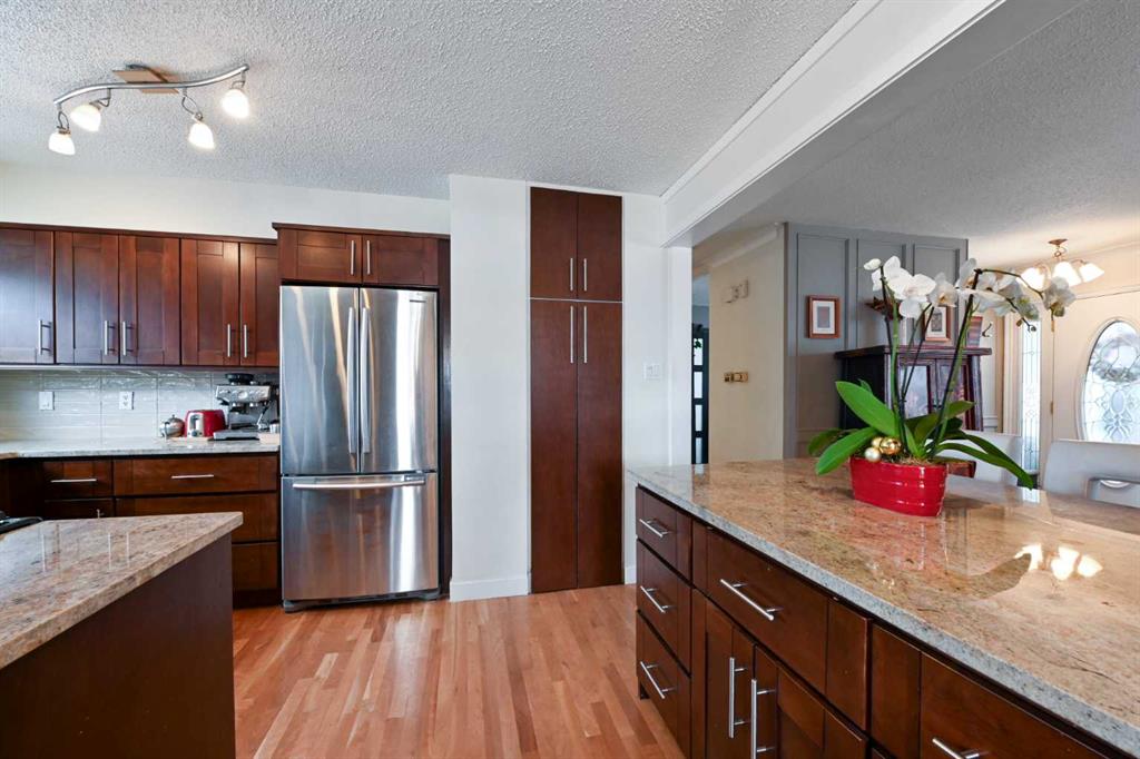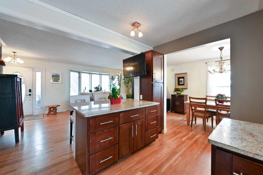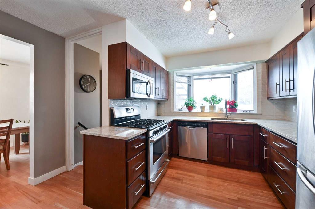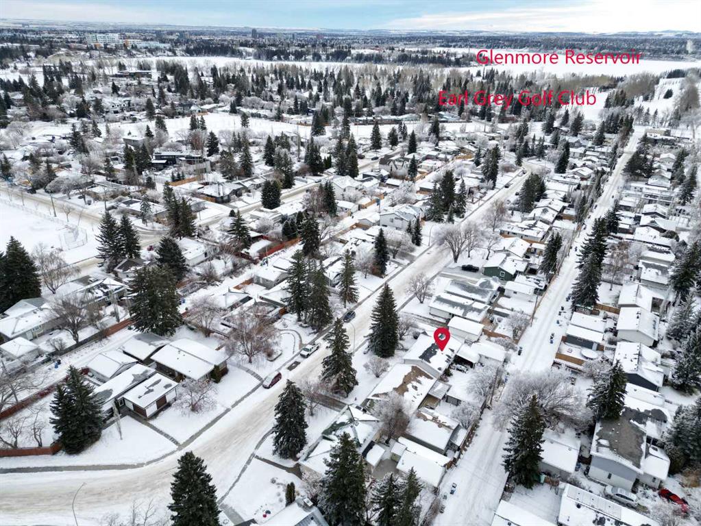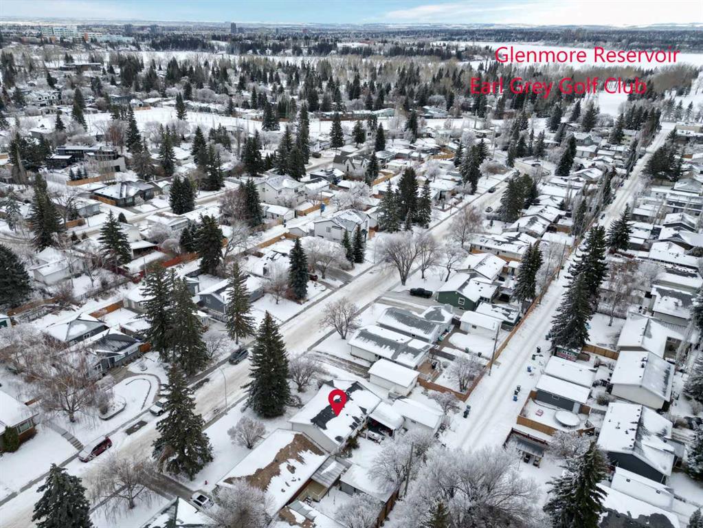 ** Open House Saturday, January 10th from 11:30AM-1PM! ** Welcome to this beautifully maintained and renovated Lakeview bungalow, tucked away on a quiet, private pocket just steps from Earl Grey Golf Club and the North Glenmore Park . Set on an expansive 64’ lot, this home in the highly desirable Lakeview/North Glenmore area offers over 2,000 sq. ft. of developed living space and an exceptional blend of location, lifestyle, and thoughtful upgrades. The bright, open-concept main level has been thoughtfully redesigned with the kitchen and dining area opened up for seamless flow—ideal for both everyday living and entertaining. The renovated kitchen features new backsplash tiles, granite countertops, stainless steel appliances, a gas stove, updated cabinetry, and modern fixtures, while large bay windows at both the front and back of the home flood the space with natural light, creating a warm and inviting atmosphere. Two spacious bedrooms complete this level, including a comfortable primary retreat with a 2-piece ensuite. The second bedroom incorporates a flexible office area with a stylish barn door leading to the sleeping quarters and is conveniently located near the 4-piece bathroom. This layout could easily be reconfigured back to three bedrooms, if desired. Hardwood flooring throughout the main floor added and refinished to include the kitchen and primary bedroom. Downstairs, the fully finished basement has been freshly painted and offers a third bedroom along with a beautifully renovated bathroom. Additional highlights include pot lighting, surround-sound wiring, and newer vinyl windows that provide abundant natural light—making this space perfect for guests, entertaining, or relaxing. Another significant upgrade to mention is a new roof in 2024. The professionally landscaped yard is meticulously maintained and offers both a garage and RV parking—rare finds in this sought-after community. Within easy walking distance to Lakeview Plaza Mall, the expansive Weaselhead Natural Area (585.6 acres!), the Calgary Rowing Club, and top-rated schools at all levels, including Calgary Girls Charter School, enjoy being just 10 minutes from downtown while still surrounded by nature and recreation.