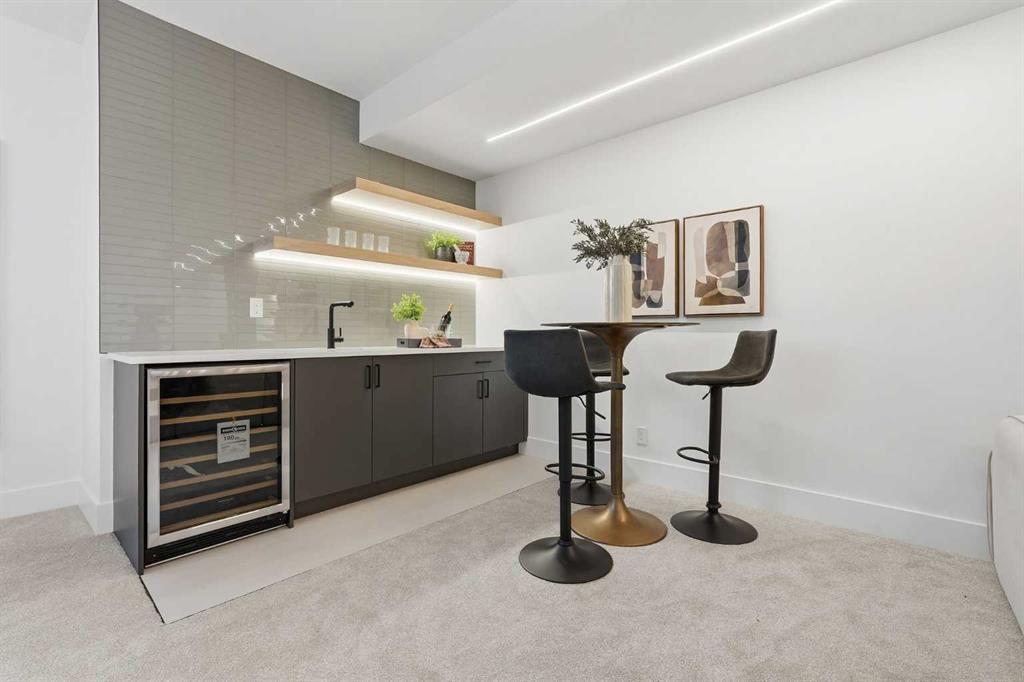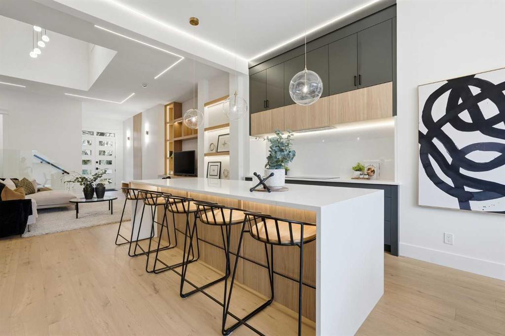 OPEN HOUSE SATURDAY, FEBRUARY 7TH FROM 2-4 PM & SUNDAY, FEBRUARY 8TH FROM 11 AM - 1 PM. Stunning new home with full Smart Home capability, built by Libra Homes situated on a 27.6’x120’ lot in the heart of North Glenmore Park, offering 3+1 bedrooms & nearly 3000 sq ft of luxurious living space. The open & airy main level presents wide plank hardwood floors, lofty ceilings & stylish light fixtures, showcasing a spacious living room with built-ins that seamlessly transitions into the unique dual style kitchen that’s perfect for the entertainer & tastefully finished with quartz counter tops, island/eating bar & the convenience of a built-in oven, induction cooktop stove plus a gas stove with pot filler, 2 rangehoods, full sized fridge & a second smaller built-in paneled fridge with 2 drawers, making prep work & cooking for large gatherings effortless. A bright dining area provides ample space to host family & friends. A private office is located just off the foyer, perfect for a home office setup & a 2 piece powder room completes the main level. Ascend the open riser staircase to the second level that hosts 3 bedrooms, a 5 piece main bath & a well-designed laundry room with sink & storage. The primary retreat boasts a to-die-for walk-in closet & opulent 5 piece ensuite with dual sinks, relaxing freestanding soaker tub & oversized glass enclosed shower. Basement development lends itself to game or movie night, featuring a family/media room with built-in entertainment centre, cozy fireplace, built-in speakers & wet bar with plenty of room for a second seating area. A fourth bedroom & 3 piece bath with rejuvenating steam shower are the finishing touches to the basement. Other notable features, roughed-in A/C, LED lighting throughout, large back deck & double detached garage with enough space to park a larger vehicle. The location is incredibly convenient, close to Glenmore Athletic Park, Lakeview & Earl Grey Golf Clubs, schools, shopping, public transit & effortless access to Glenmore & Crowchild Trails.