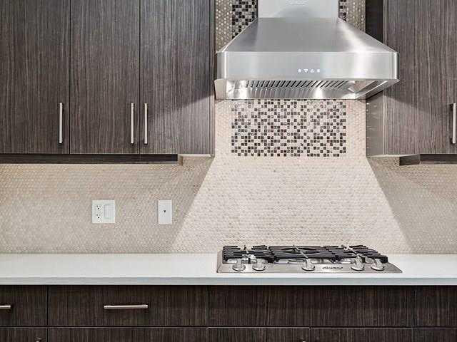 Kitchen: Gourmet appliances, sleek cabinetry, Island with breakfast bar and a full pantry